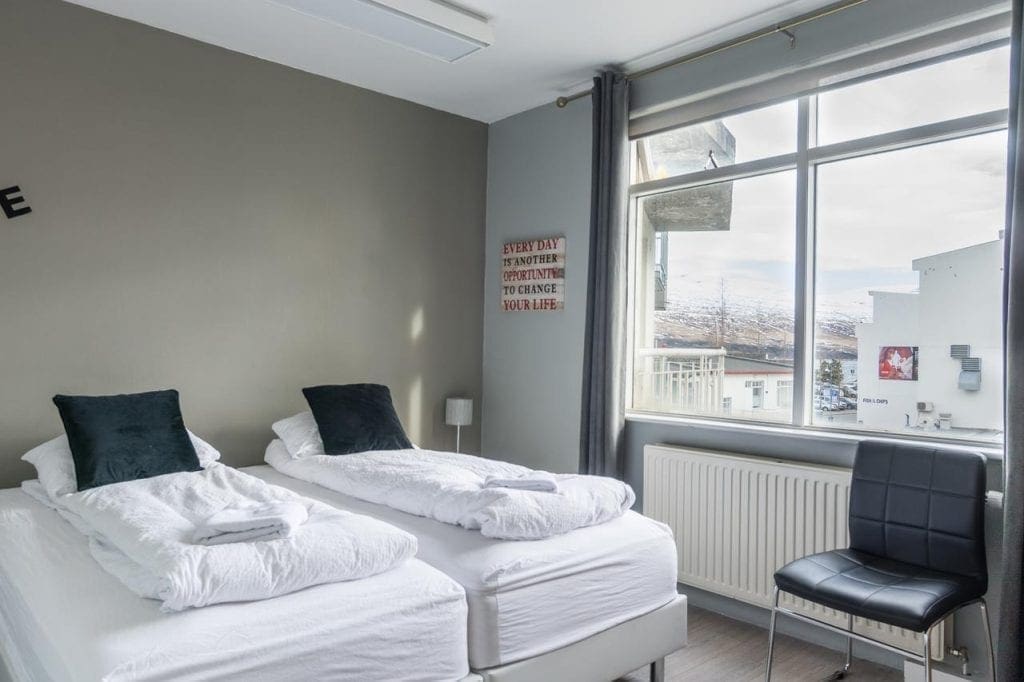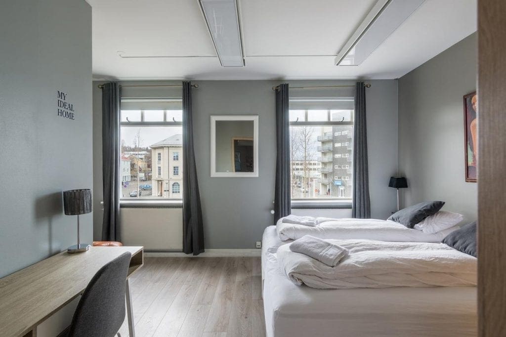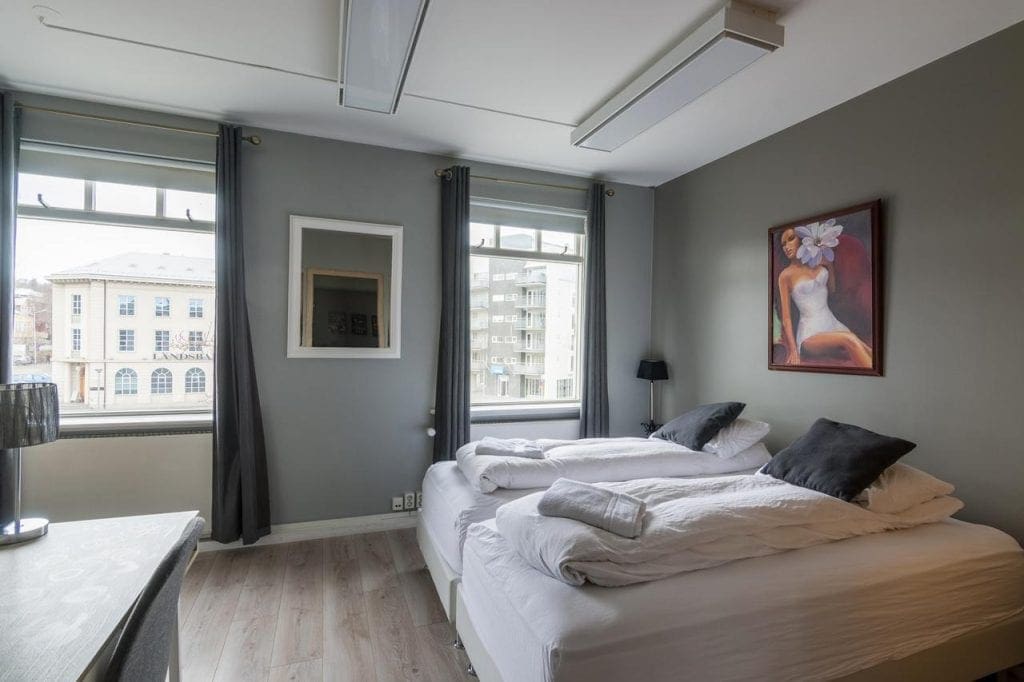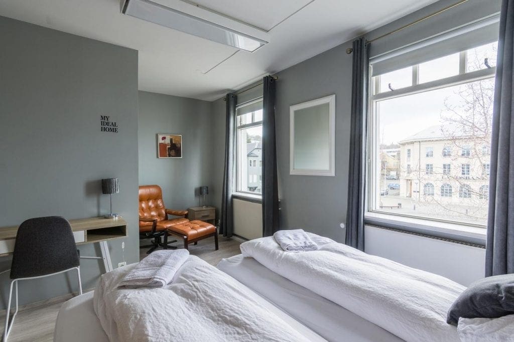 Beautiful modern rooms in Town Square Guesthouse in Akureyri.