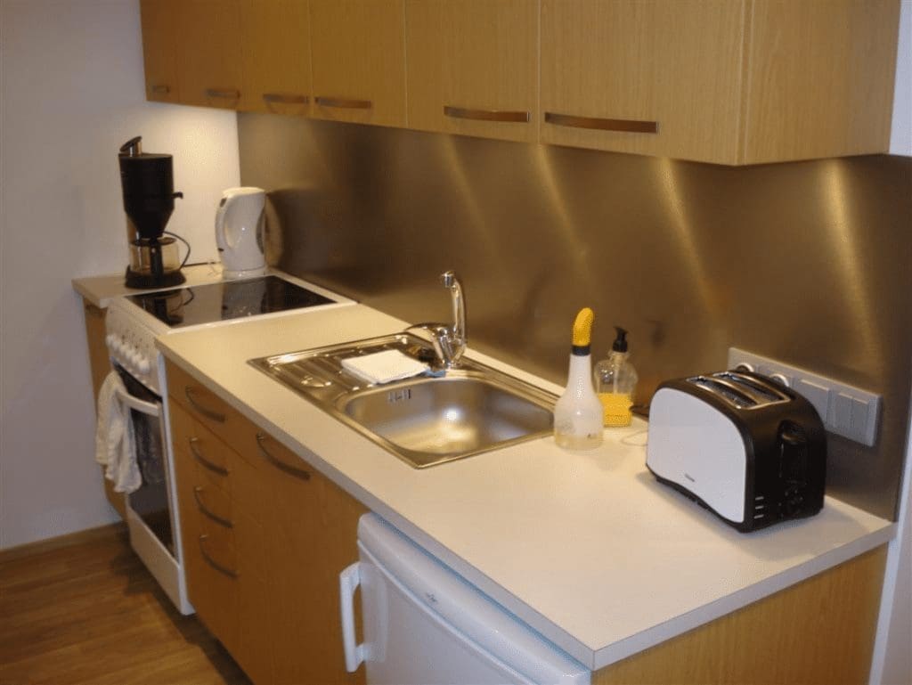 Vínland Cottage is around 45 square meters and has two bedrooms. The first bedroom has a large double bed, the second bedroom features three single bed and the living room has a double sleeping sofa can therefore comfortably sleep seven persons. The cottage is fully furnished and features an equipped kitchen, a living room with a seating area and a flat-screen TV with DVD player along terrace with a gas barbecue.