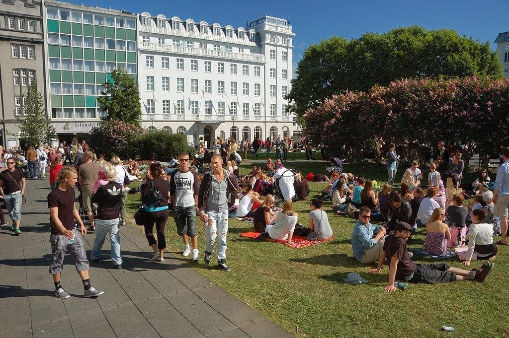 Austurvöllur is located in the midpoint of Reykjavík. It is popular for people to go and sunbathe, but at the same time, it is a very important historic place downtown. The park is perfect for the sunny days, especially in the summertime. People go for picnics or beers, reading a book and sitting down on the fresh grass, and perhaps, just enjoying the day.