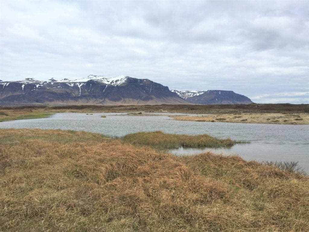 Landbrotalaug is not only a small hot spring. Enjoying the warm water of this natural spring is one thing, but experiencing it with the stunning view over Snæfellsnesjökull is something different. Getting to Landbrotalaug can be a little bit difficult. From road 54, pass the sign that says Stóra Hraun, and following the path past a small farm, you will get to a small parking lot. From here, you will for sure have to wait your turn.