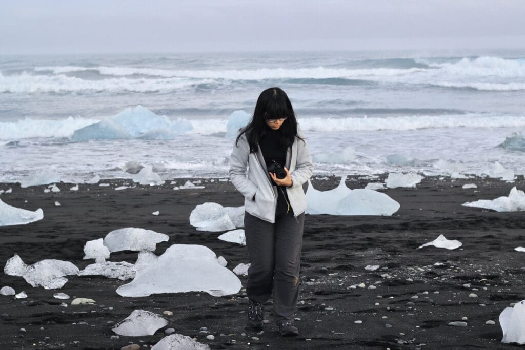 Just across the road lies the famous Diamond Beach, where chunks of glacial ice wash ashore, sparkling like diamonds against the black volcanic sand—perfect for photos and a peaceful stroll.