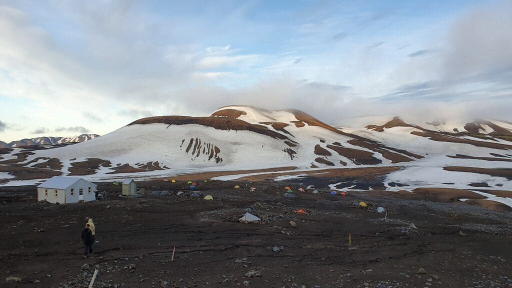 The hike from Álftavatn to Emstrur begins in the beautiful surroundings of Lake Álftavatn, surrounded by mountains and green meadows. This spot is perfect for enjoying a peaceful sunrise before starting the hike.