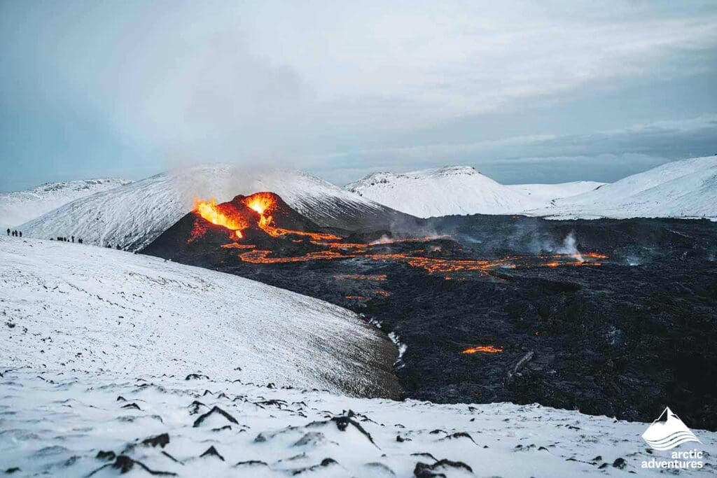 Day 4: After a great breakfast at your hotel, you will check out of the hotel. In the morning you will be picked up for your Active Volcano Hiking tour at Geldingadalir, where you will experience the true power of nature. After the hiking tour, you will be dropped off back at the hotel where you stayed, now you will have some free time to explore Reykjavík. In the evening you will be picked up for your Northern Lights tour. Around midnight you will be dropped off back in Reykjavík, where you complete your tour.