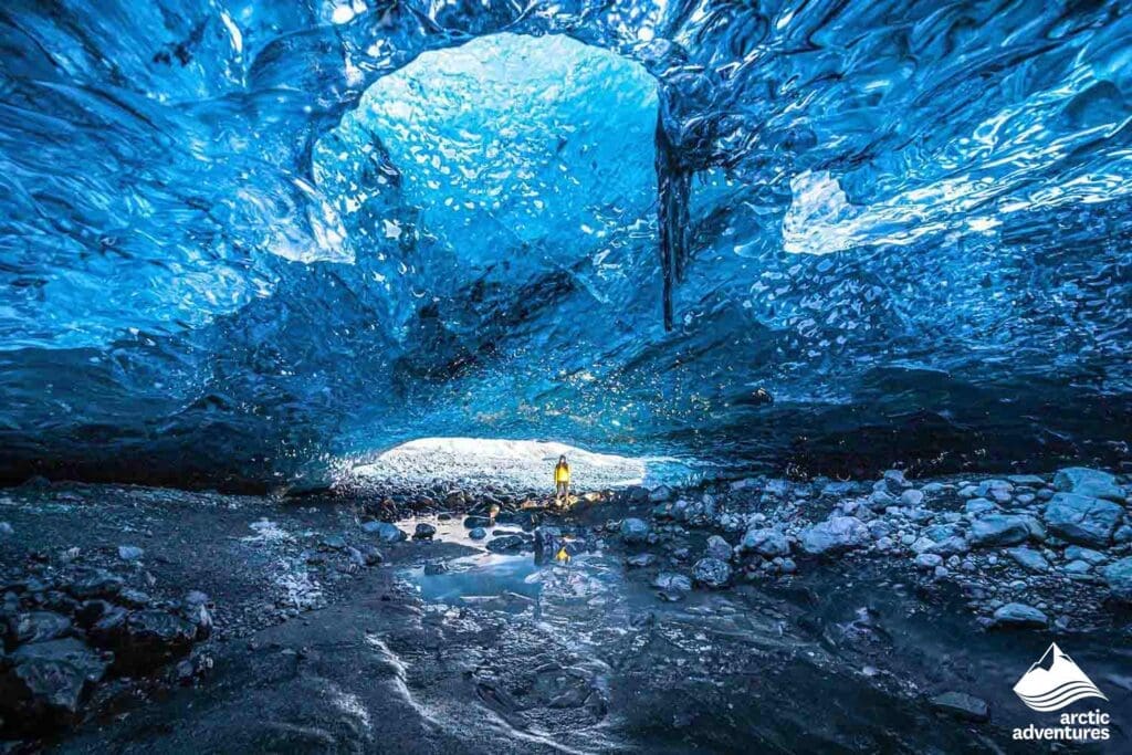 Day 2: We continue our journey towards Jokulsarlon Glacier Lagoon and Diamond Beach. In Skaftafell National park you will meet our certified glacier guides and embark on a glacier hiking and ice caving tour on Falljökull. Ice Caves are only found during the wintertime when the glacial rivers retract and the water freezes and they can look completely different every year.