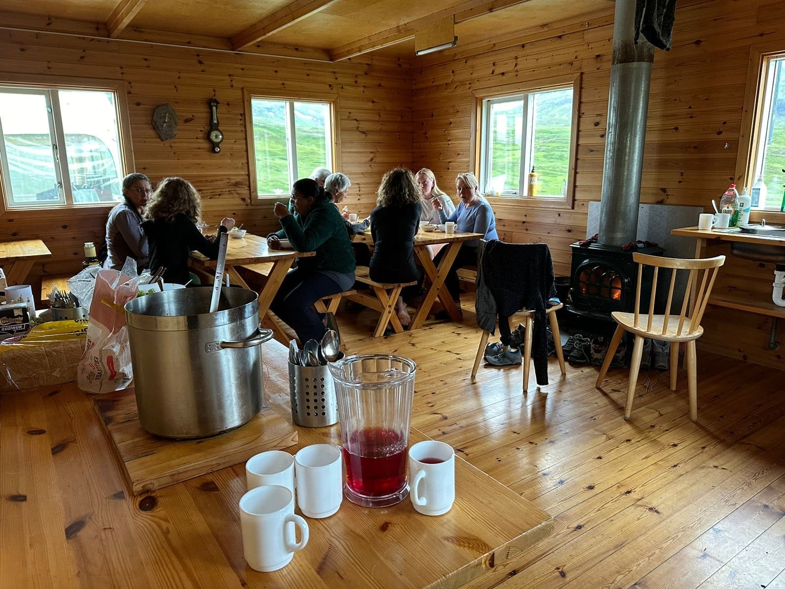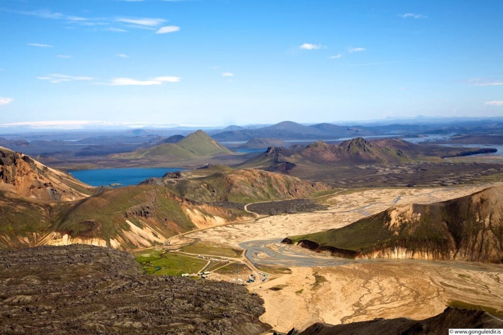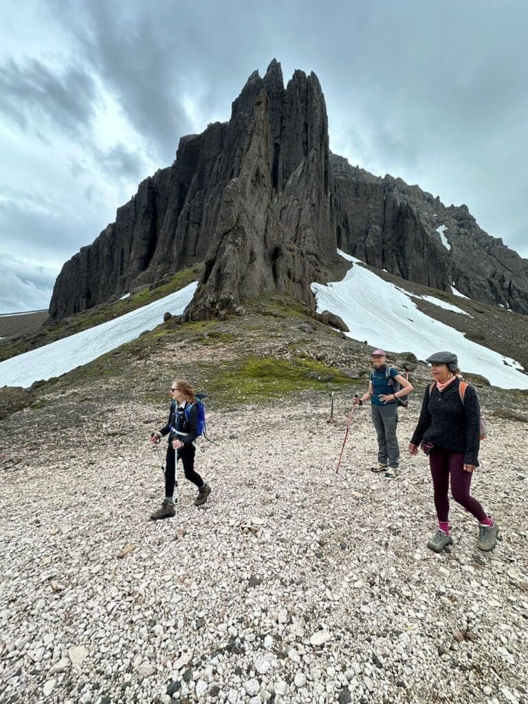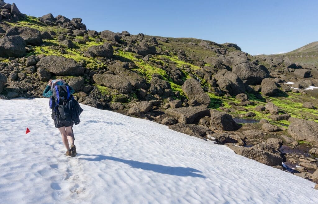 Rise and shine, it’s trekking time! A warm cup of coffee and hot breakfast are waiting for you to begin the day. Today our journey takes us west from the cove and across the Stóruá river via a good footbridge. As the trail turns south, views of a spectacular valley will unfold. This small valley is quite the sight, surrounded by Hvítuhnjúkur, Hvítafjall, and Hvítserk mountains with a deep blue hue of lapis lazul mixed in, this special place is ideal for a lunch break, leisurely stroll, and some banger photos!