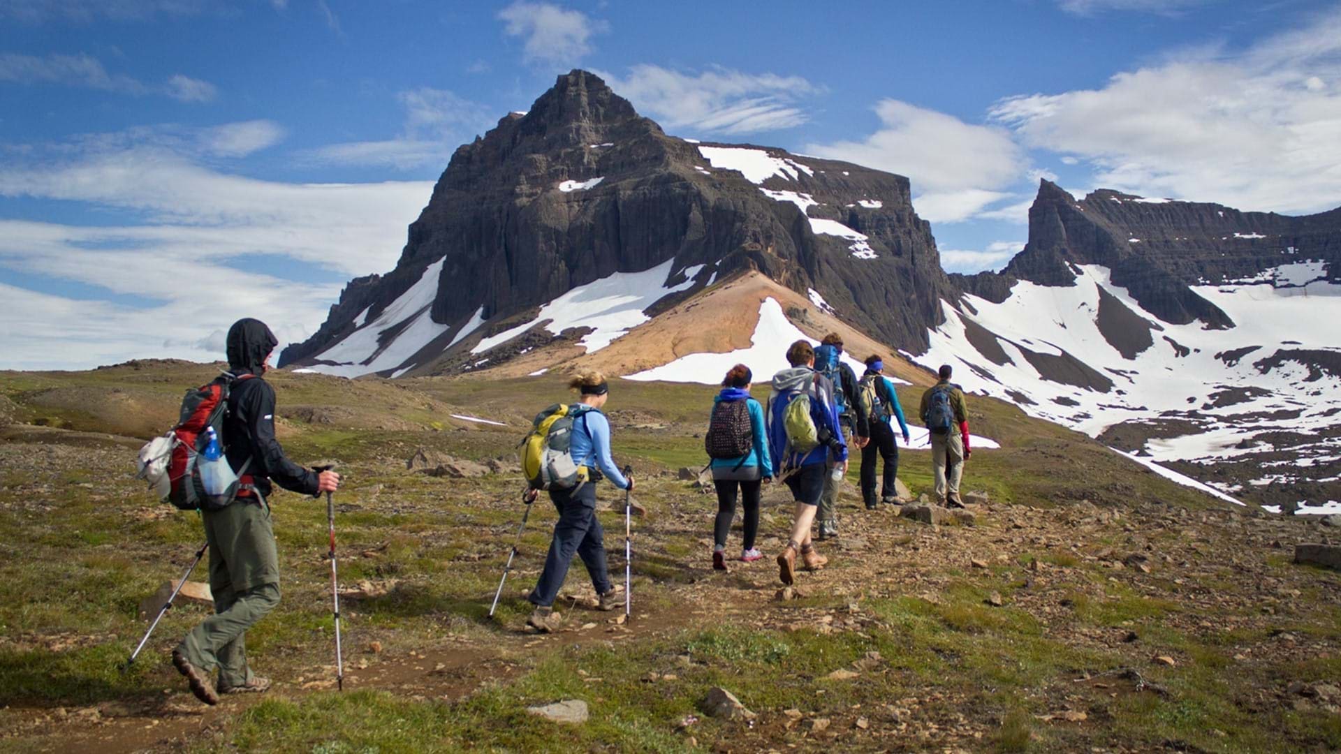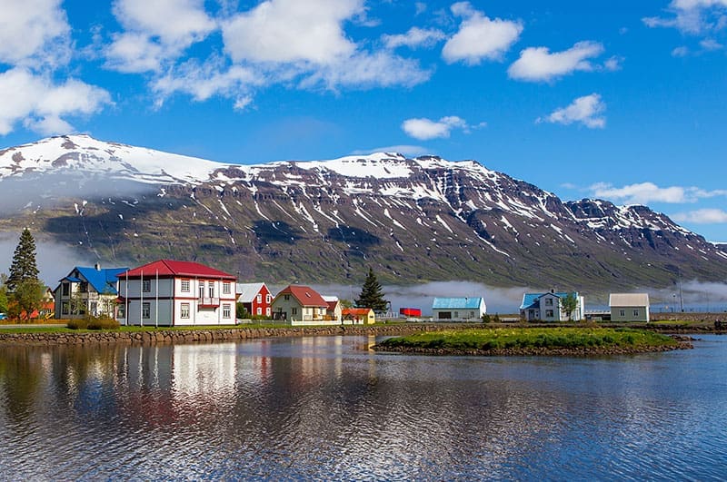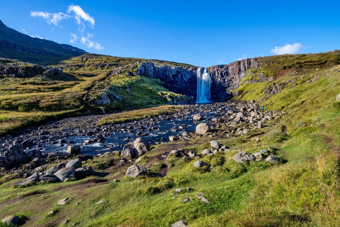 Our flight should arrive around 10 a.m., and from here we will begin our hike to Stórurð, an area featuring enormous tuff boulders strewn across a seamless blend of meadows and lakes. We will stop to enjoy our packed lunch along the trail as we take in the stunning views. After lunch our day continues as we approach the Borgafjörður Eystri Fjord, a charming place with only 100 inhabitants offering a great variety of hiking routes and a marina for observing puffins. Here we will settle into our hotel for the evening and be rewarded with a delicious local fish soup and other delicacies.