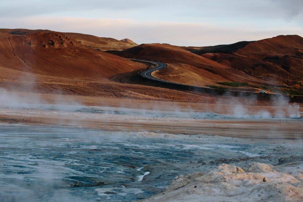 Next, visit Námaskarð geothermal area, known for its otherworldly landscapes and bubbling mud pots. Take a walk among the steaming vents and colorful mineral deposits, getting a glimpse of Iceland's geothermal activity up close.