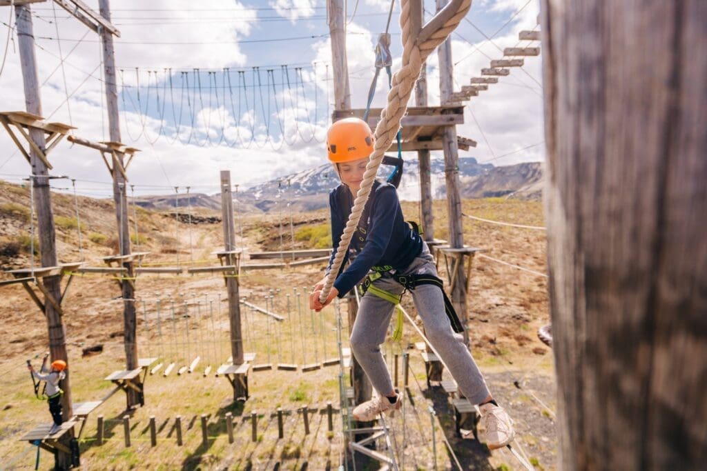 At the Adventure Park, you will find a wide selection of climbing routes and exciting challenges.
