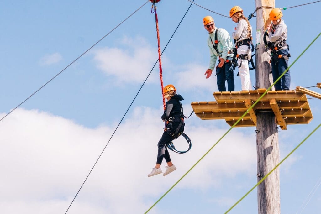 The park consists of 3 levels – 1, 5, and 10 meters, Zip-line, Quick Flight fall device, and a 12m high Giant Swing.