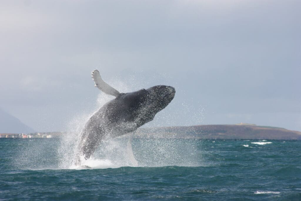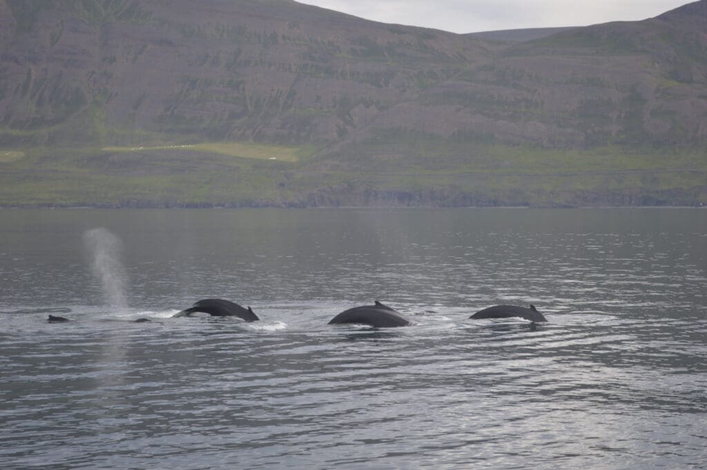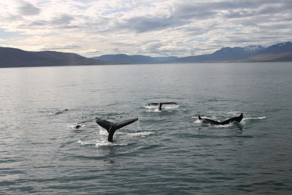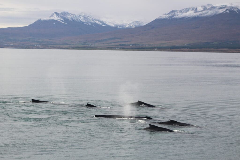 We sail out from Akureyri harbour into the scenic waters of Eyjafjörður – one of Iceland’s most sheltered fjords and a fantastic whale watching area. On this 2,5-3 hour tour, you get to enjoy the breathtaking landscapes and search for the majestic marine life of North Iceland, including humpback whales, minke whales, harbour porpoises, and white-beaked dolphins. Our expert guides will share fascinating facts and help spot whales from the decks.
