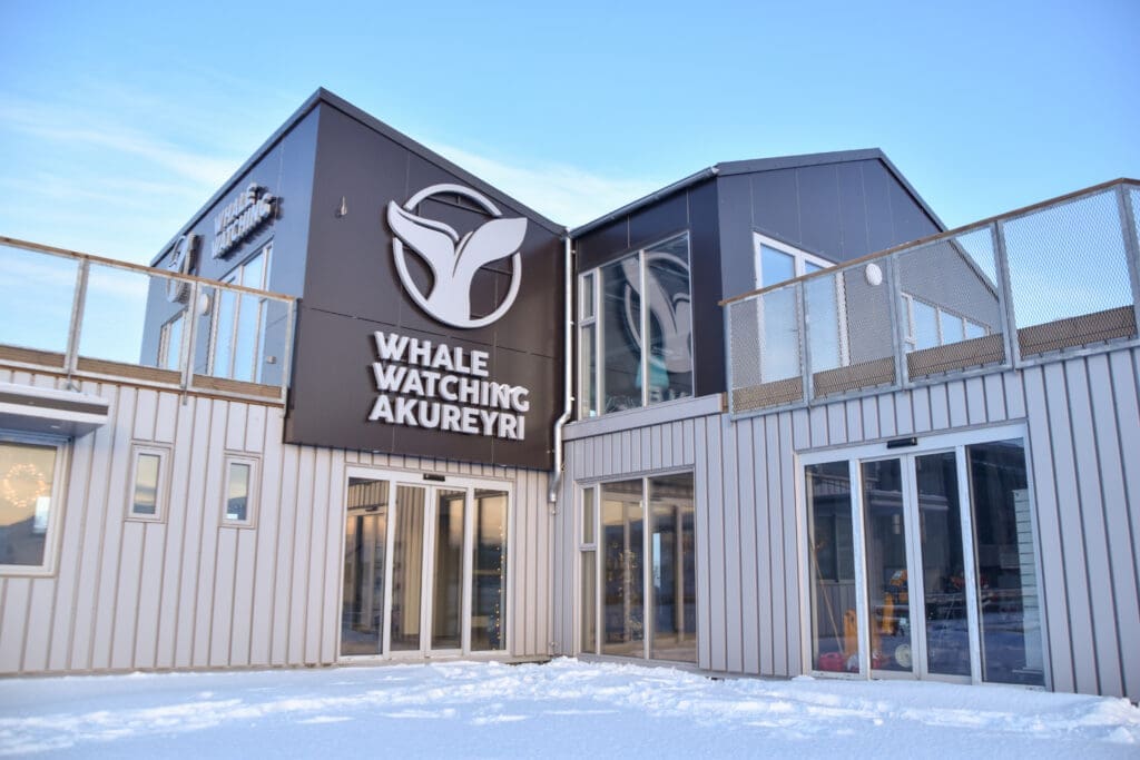 Meet us at the Whale Watching Akureyri ticket office by the Oddeyrarbót pier, right next to the big round building, HOF, in downtown Akureyri. You can't miss it!