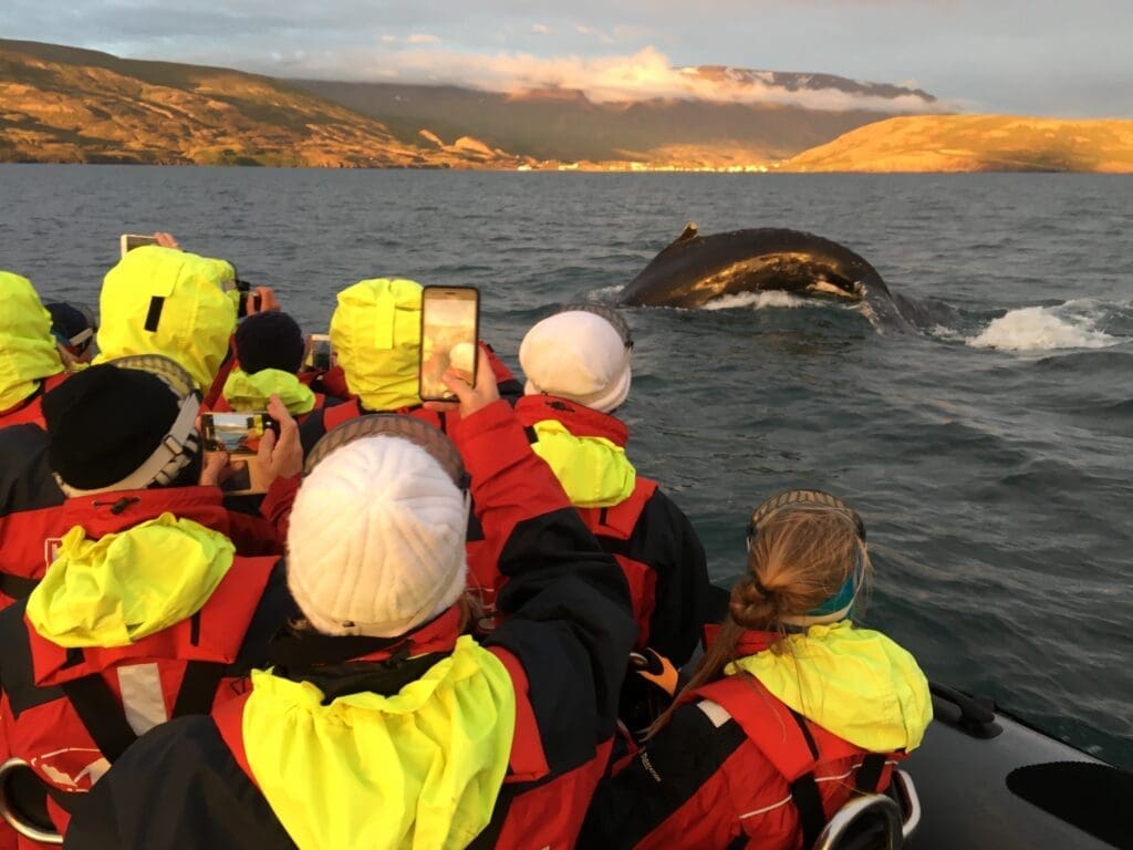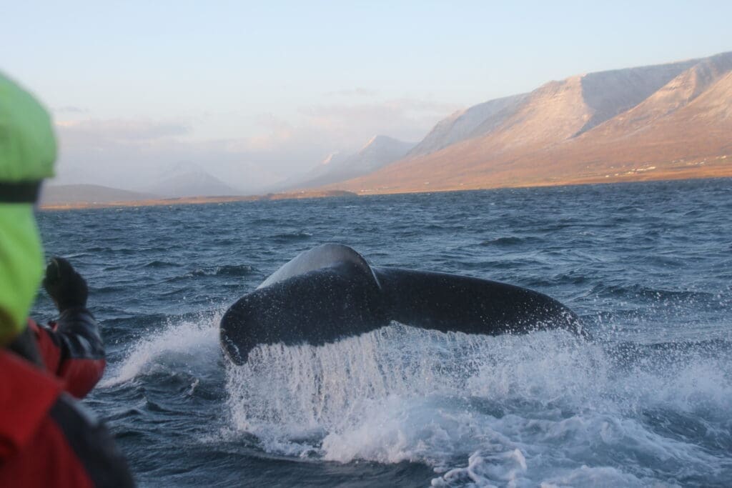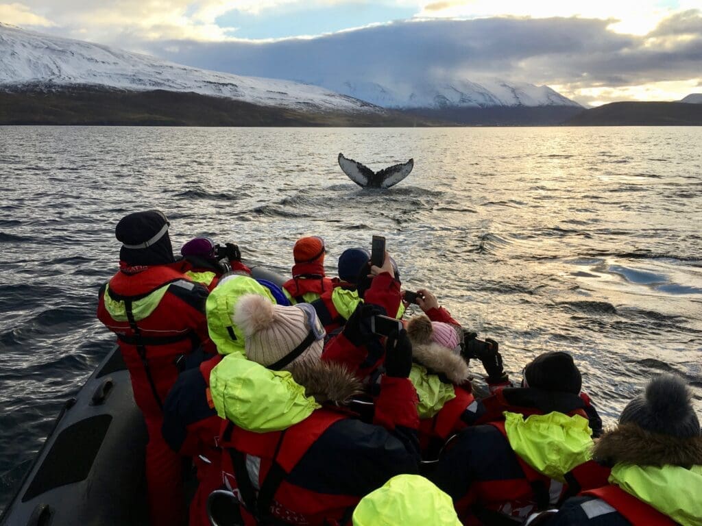 Experience and get close to the incredible humpback whales of the Eyjafjord, starting from the capital of North Iceland, Akureyri. With only 12 passengers on each boat we can guarantee an adventure of a lifetime on an intimate whale watching tour.