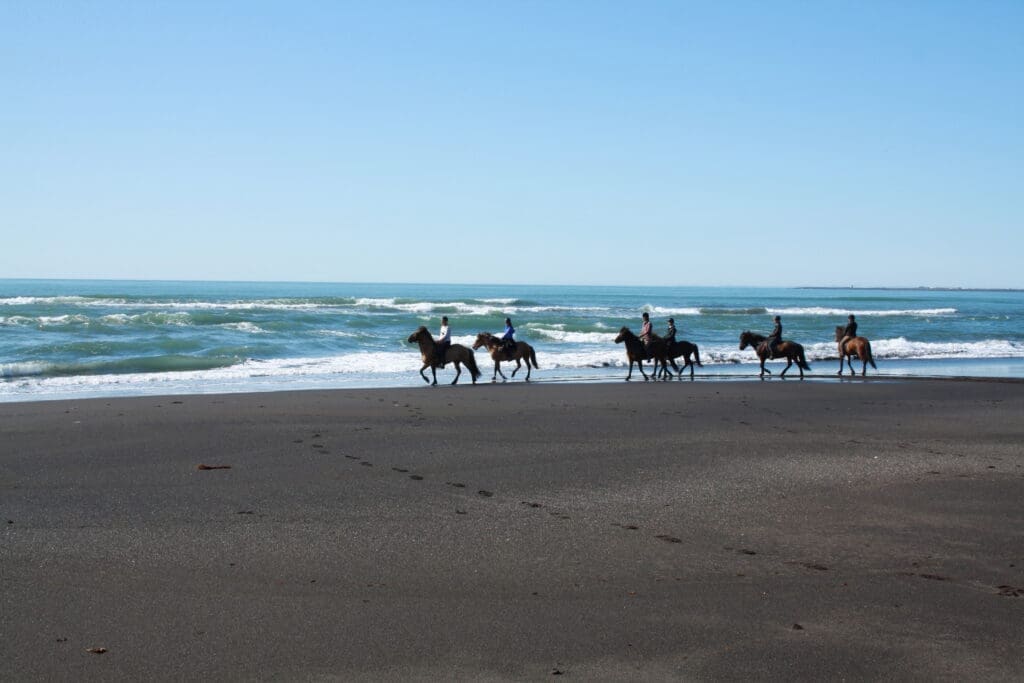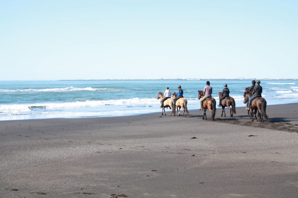 There is nothing better than riding the Icelandic horse along the soft sandy beaches. After getting ready at Sólhestar base, we will start this 25 km tour on the beach, near the small village Þorlákshöfn. From here we ride along the beach for about 3 km, by the small village Eyrarbakki, and through the meadows, Ölfusengjar, to our home base. This is a perfect opportunity to test the famous TÖLT over a long distance and enjoy the scenic landscape and ocean view. At the end of the tour, you will enjoy coffee and cookies at Sólhestar base, before a drop-off at your hotel. We ride in small groups and offer personal and friendly service! Total tour duration is 7 hours with pickup, without pickup 5 hours and 4-5 hours riding time,