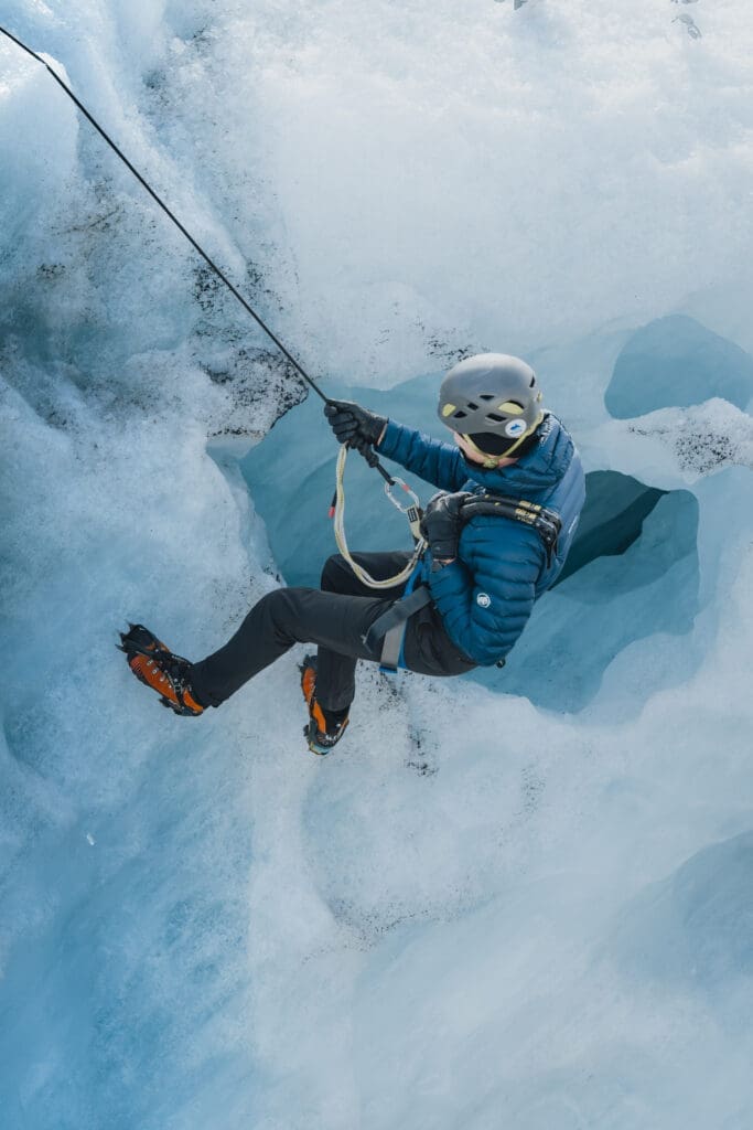 Your certified glacier guide will provide all the necessary equipment, including crampons, helmets, ice axes, and safety gear. After a safety briefing and gear fitting, you’ll hike across the glacier’s stunning landscape of crevasses, ice ridges, and blue-hued formations. Along the way, you’ll learn about the glacier’s geology and dynamic nature. You will be able to witness some breathtaking panoramic views, as well as crevasses, ridges and even an ice wall where you will have an introduction to ice climbing and will be able to experience it firsthand.