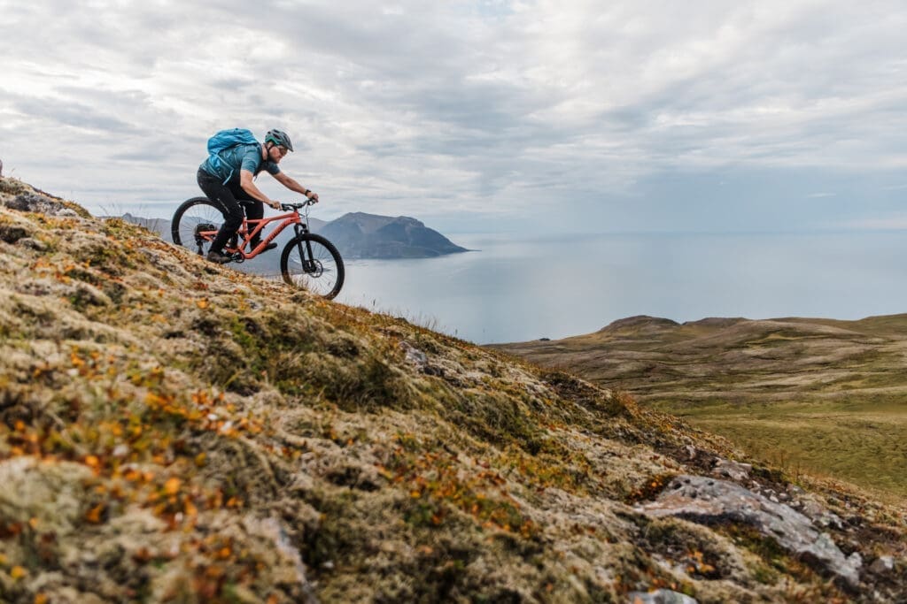 Scenic views are the name of the game on the route along with raw, untamed trails, sure to pose a fun challenge for any rider. The final descent is flowy and wild, seemingly at the edge of the world, with nothing but ocean in front of you. Just before your calves have the chance to start cramping you'll be down in the picturesque harbor marveling at puffins. The ride back to town is smooth and easy on the local road and when you're back, all you'll want to do is go for another round into the wilderness.