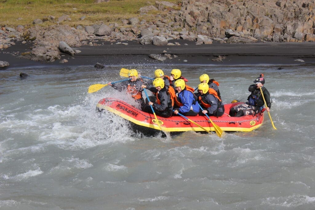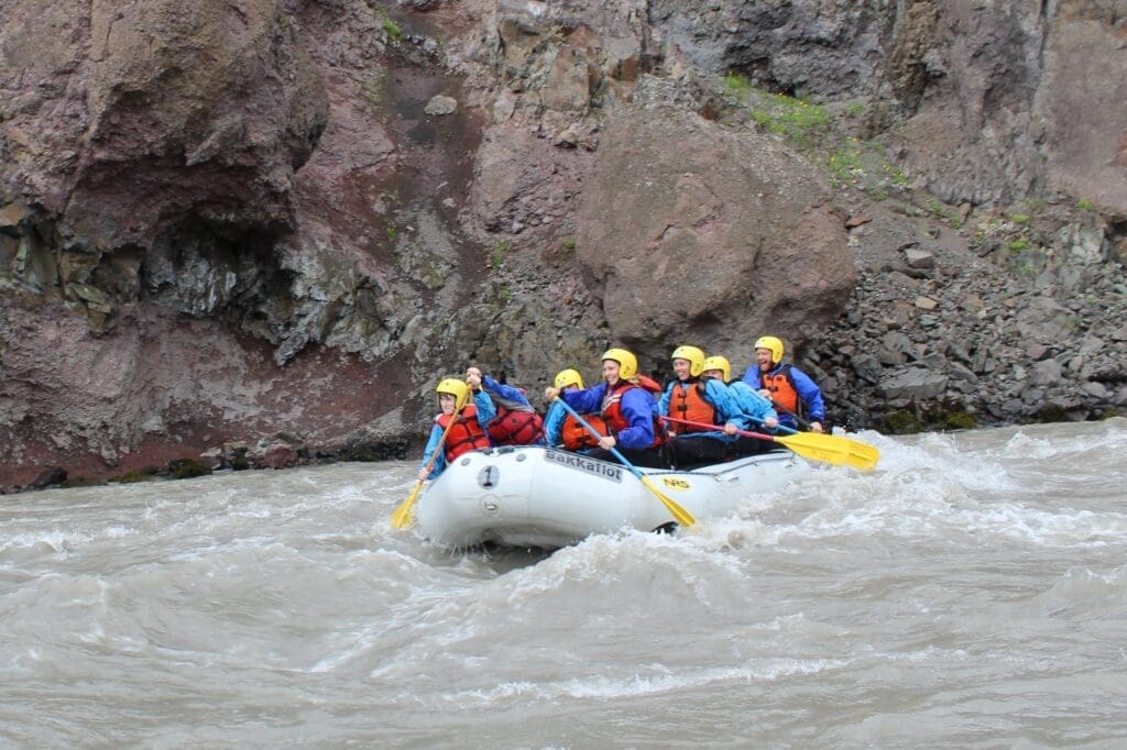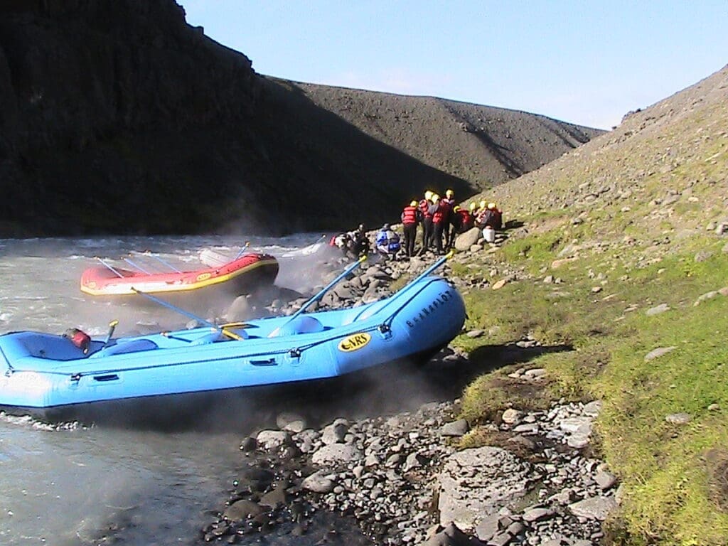 We will then take a 20 minute drive towards the West Glacial river. At the rafting put in your trip leader will give a full safety brief. You will then be divided into crews and assigned a boat and most of all your guide. Once on the river we will enter the canyon with its high walls and amazing geology. Along the way we may stop for a unique hot chocolate and for a spot of cliff jumping for the brave ones. The bus will be waiting at the takeout for the short drive back to the base where the hot pools await. Trip time is ca. 3 hours.