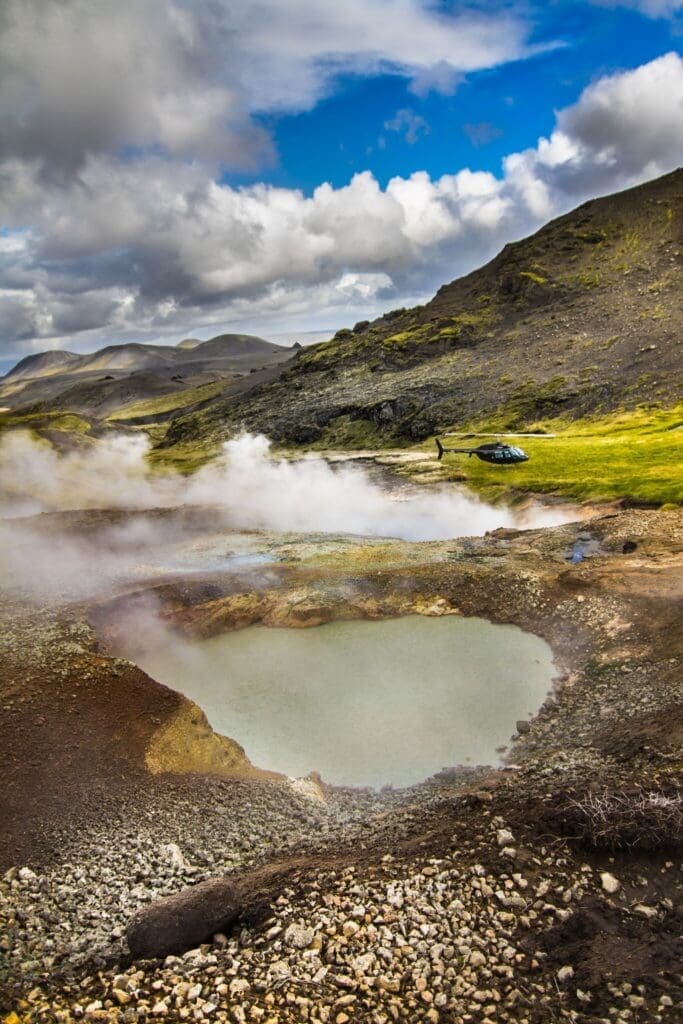 25-50 minute guided helicopter flight and a 15 minute landing by a remote geothermal area on an old volcano.