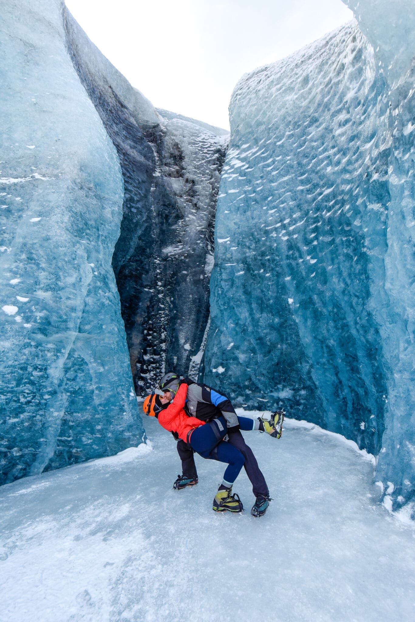 From seemingly out of nowhere, you will come upon a slope in the ice leading down into a massive ice canyon. This is where you will find out crystal crevasses. You will soon understand why it is called this as you make your way into the deep icy labyrinth. The best part is that the deeper you go into it, the more crystal blue it gets until you get to a point where you are in a world entirely made of blue. This is a major highlight of the tour and you will need a good amount of time to take it all in.