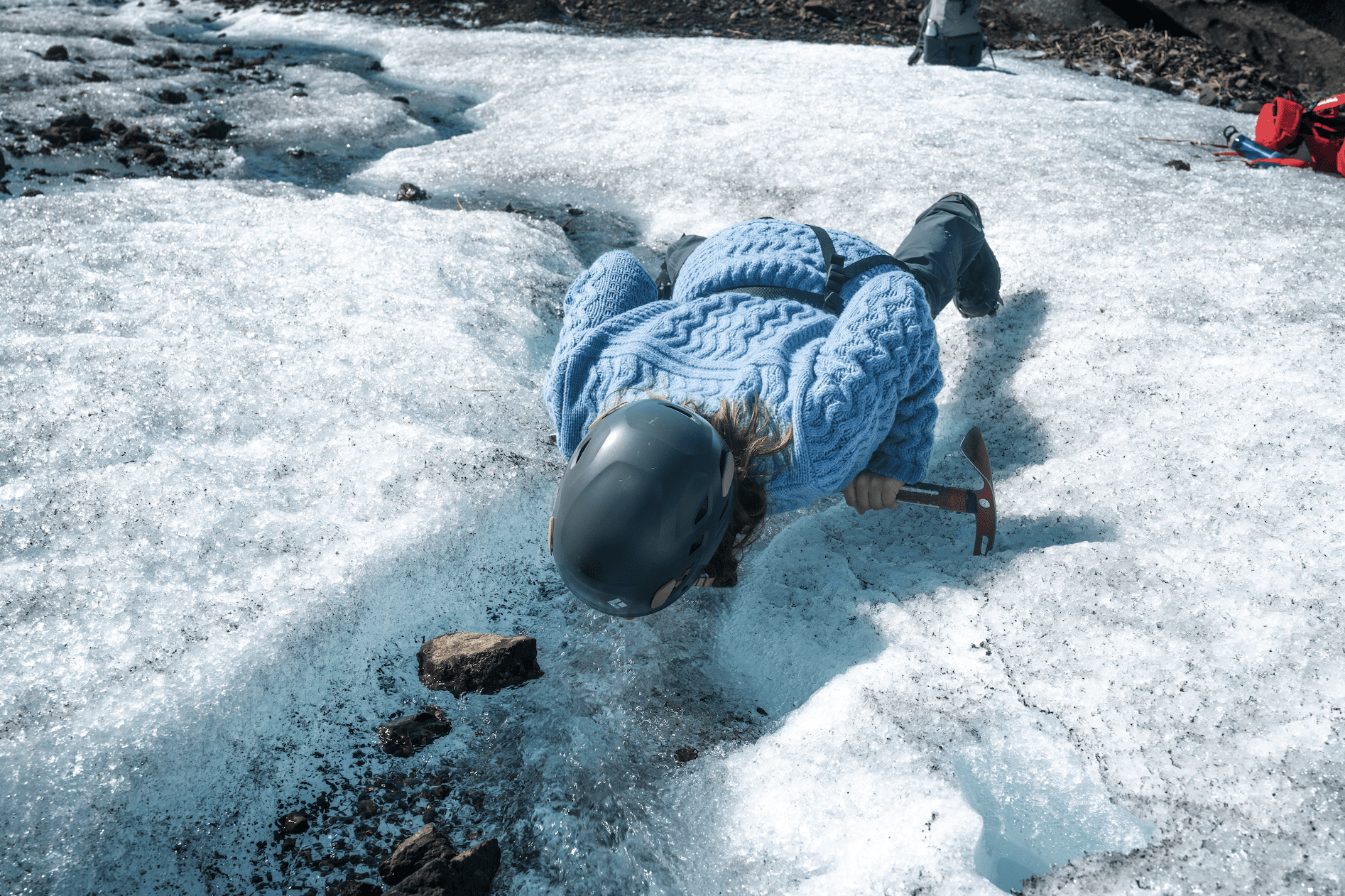 Glacier Equipment: helmet, harness, crampons