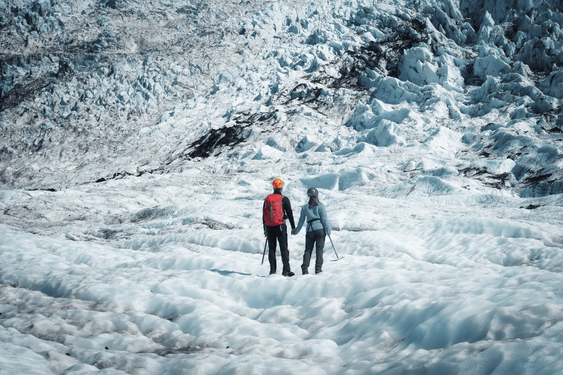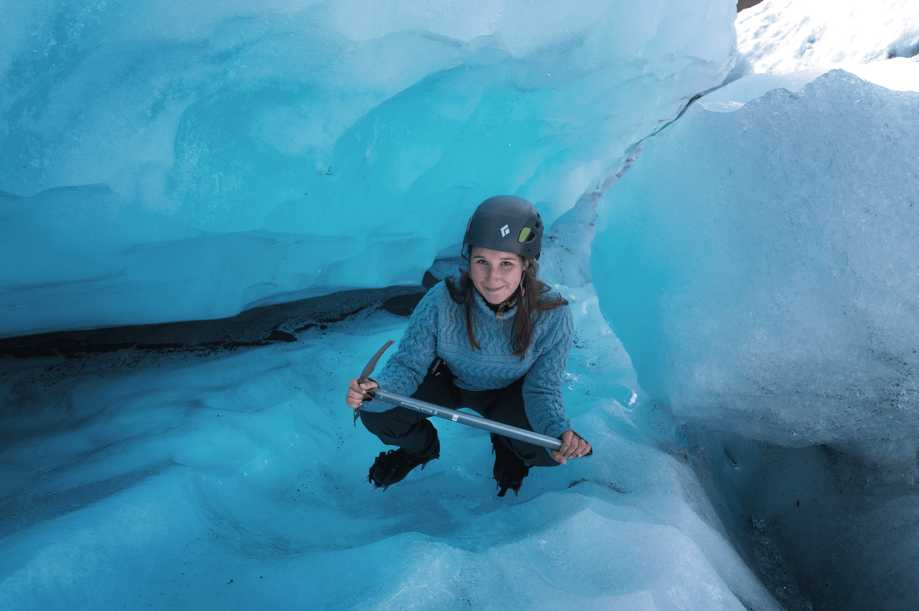From seemingly out of nowhere, you will come upon a slope in the ice leading down into a massive ice canyon. This is where you will find out crystal crevasses. You will soon understand why it is called this as you make your way into the deep icy labyrinth. The best part is that the deeper you go into it, the more crystal blue it gets until you get to a point where you are in a world entirely made of blue. This is a major highlight of the tour and you will need a good amount of time to take it all in.