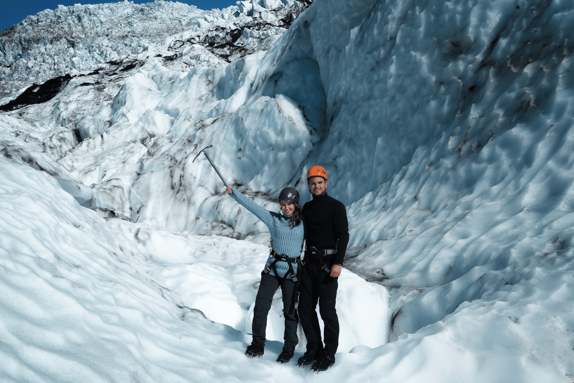 One of the most popular tours is glacier hiking photoshoot. Your guide will drive you to Vatnajokull Glacier via a 4×4 vehicle to begin your adventure. After a hike through an alien-like glacial tundra, we will arrive at the edge of the glacier where your guide will assist you in putting your crampons on.
