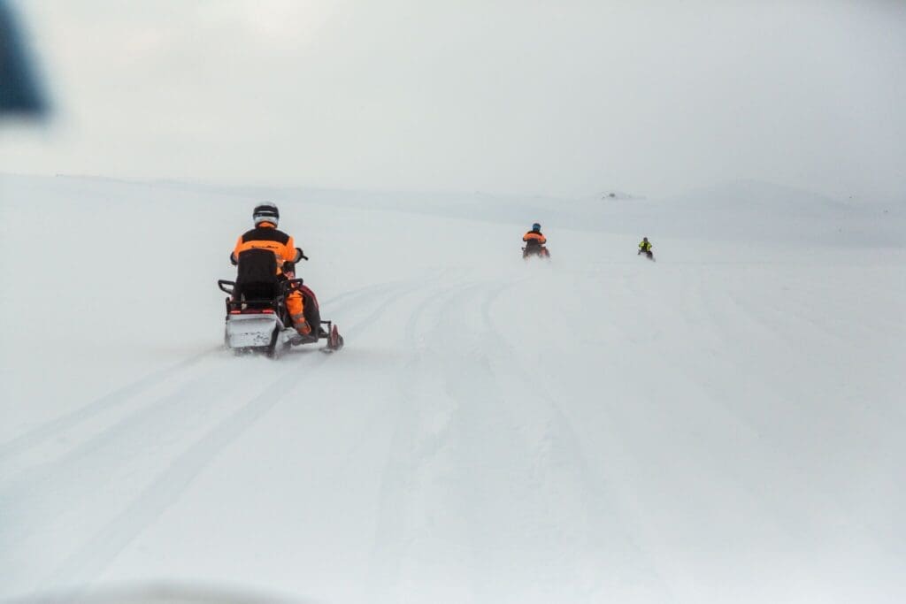 We start the day by picking you up in a super jeep or monster truck at Geysir Parking (Our meeting point is behind of Geysir Centre). From there we will head towards our snowmobile base, which is located at the roots of Langjökull glacier, the second largest glacier in Iceland. There you will get all the equipment that you need for the snowmobile ride. After a short safety briefing and a lesson on how to operate the snowmobile, we head out on a one-hour exhilarating snowmobile ride. When we are halfway through the ride, we will make a stop to explore a magical ice cave on the glacier. There you will also get the opportunity to change drivers before heading back to our base.