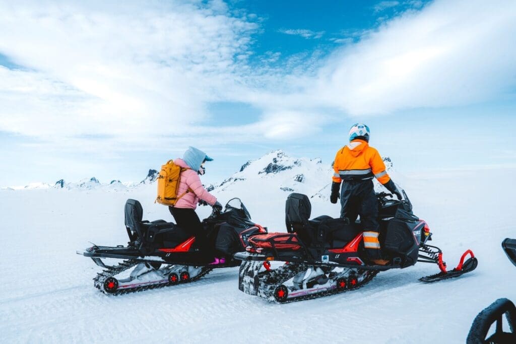 Let's talk snowmobiles – our tours are priced for two people sharing one beast of a snowmobile. But hey, if you're flying solo or just want the whole ride to yourself, you can upgrade to your very own snowmobile for an extra 10.000 ISK per person.