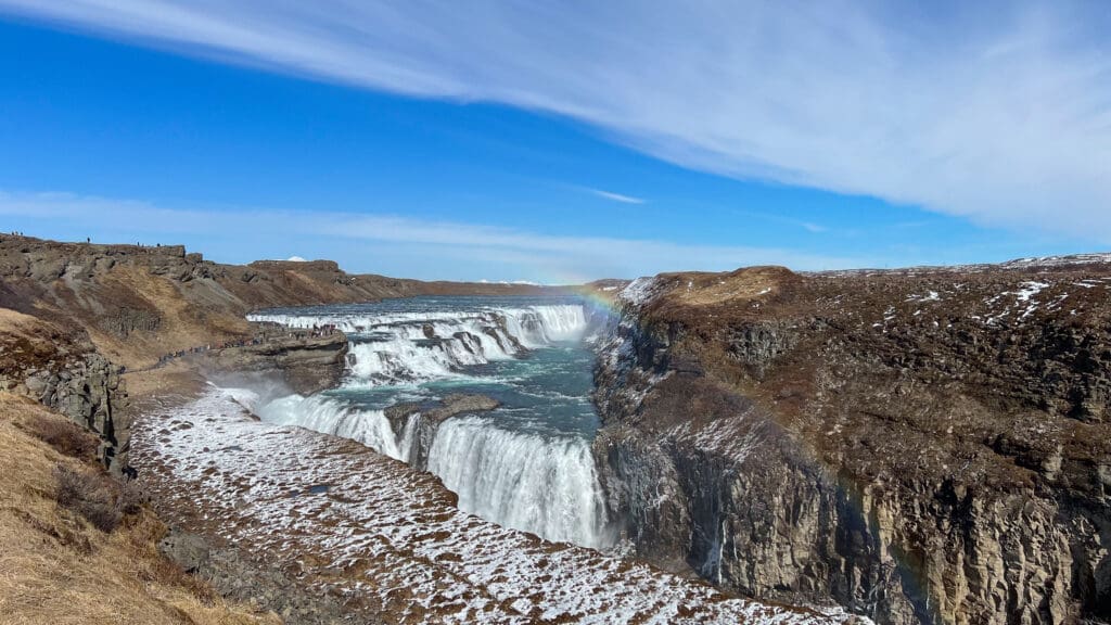 Gullfoss: one of Iceland’s most beautiful waterfalls. As the water plunges into a deep canyon, it creates a dazzling display of mist and spray that is truly awe-inspiring.