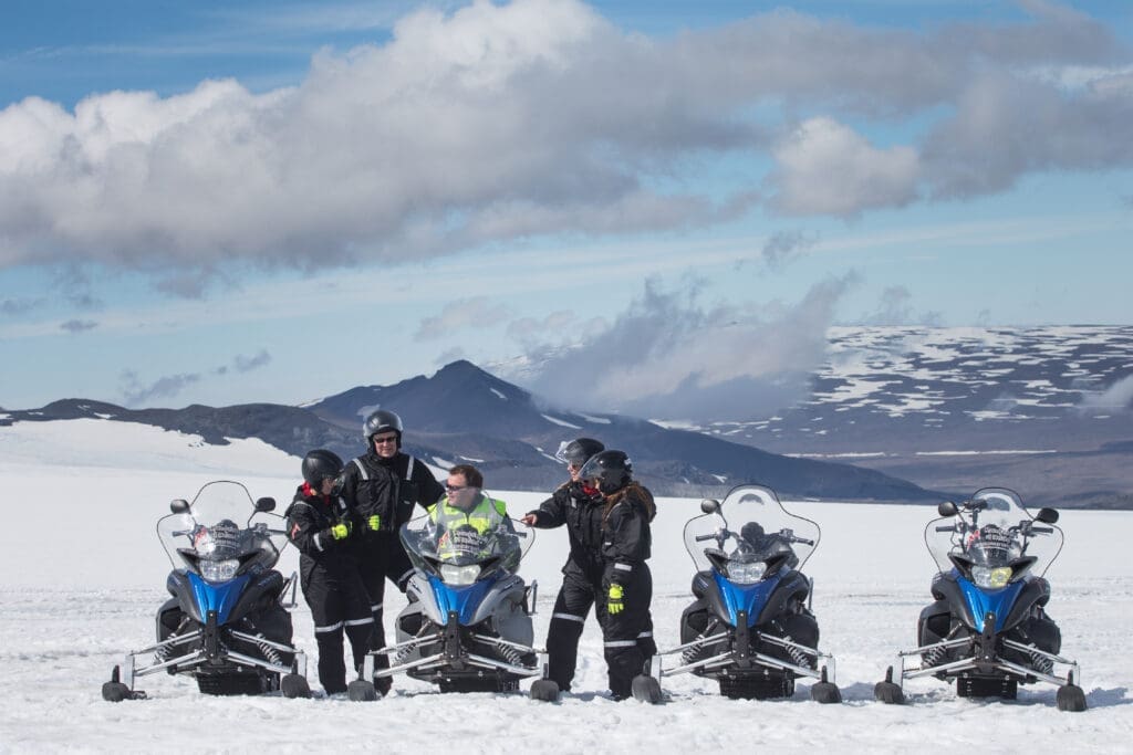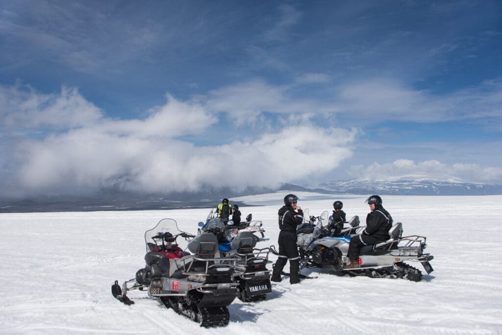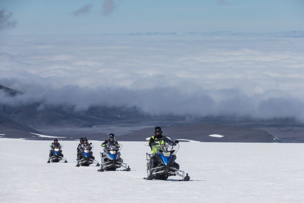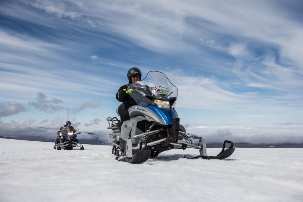 After seeing Iceland's most popular destinations head up to the Icelandic highlands for an accelerating snowmobile ride on Iceland's second-largest glacier, Langjökull. Shooting across this ice desert on a powerful snowmobile is an experience like nothing else and a trip for the senses.