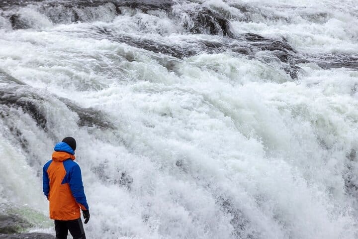 Your journey continues to the quieter Faxi Waterfall, located on the Tungufljót River, where you can enjoy a peaceful atmosphere away from large tour groups, walk close to the waterfall, and even spot salmon jumping during the summer months, adding a unique and relaxed touch to your Golden Circle experience.
