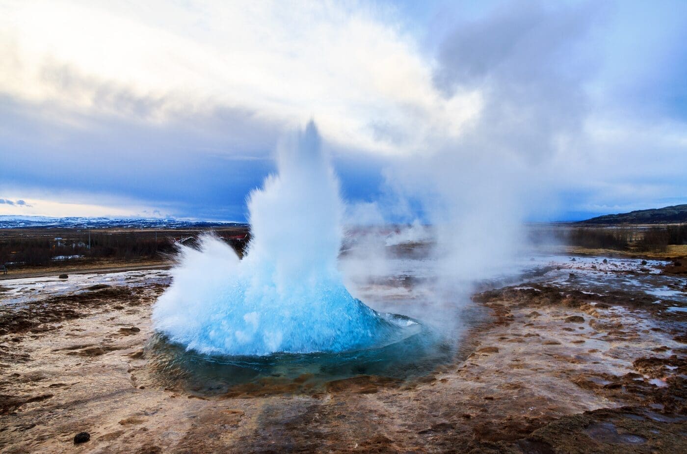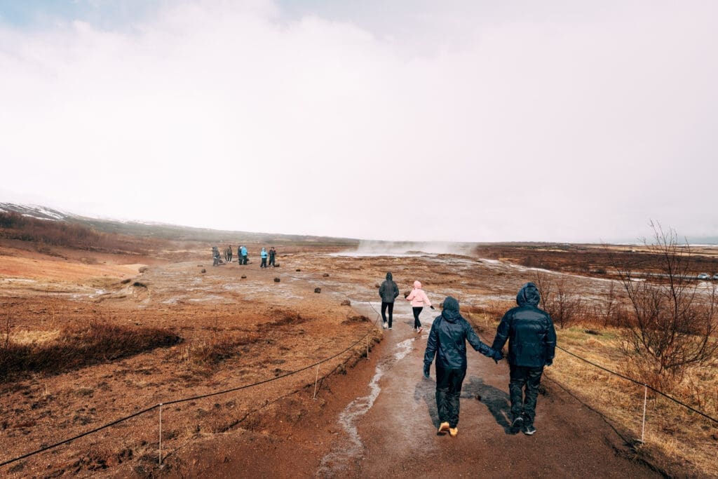 Next, you’ll visit the famous Geysir geothermal area, home to bubbling hot springs and steaming vents, where you can watch the Strokkur geyser erupt every few minutes, explore colorful geothermal pools, and learn about Iceland’s volcanic activity.