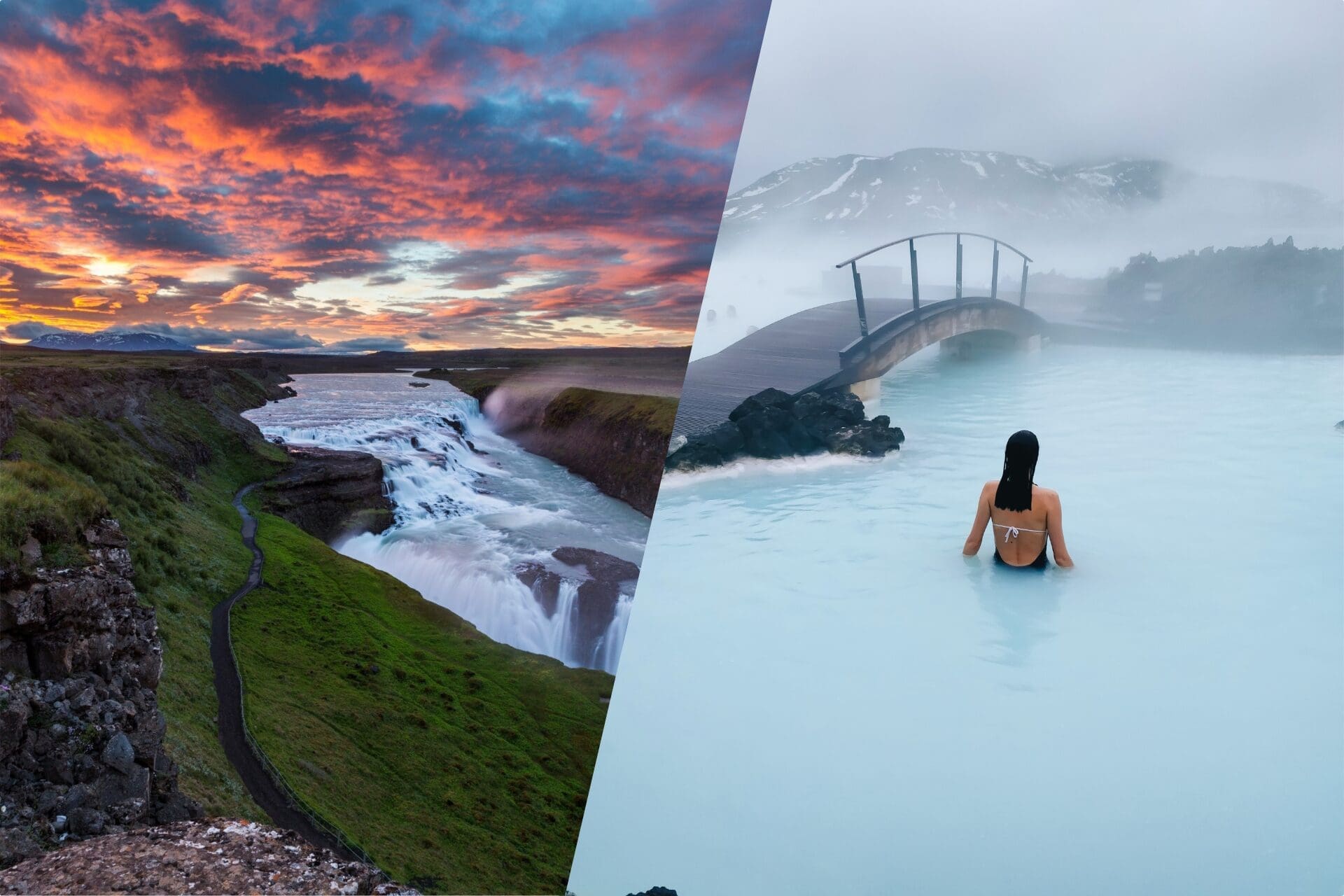 The day ends at the Blue Lagoon, where the warm blue waters offer a fitting close after hours of open landscapes and dramatic waterfalls. A bistro and swim-up bar are available on-site for food and drinks at your own expense.
