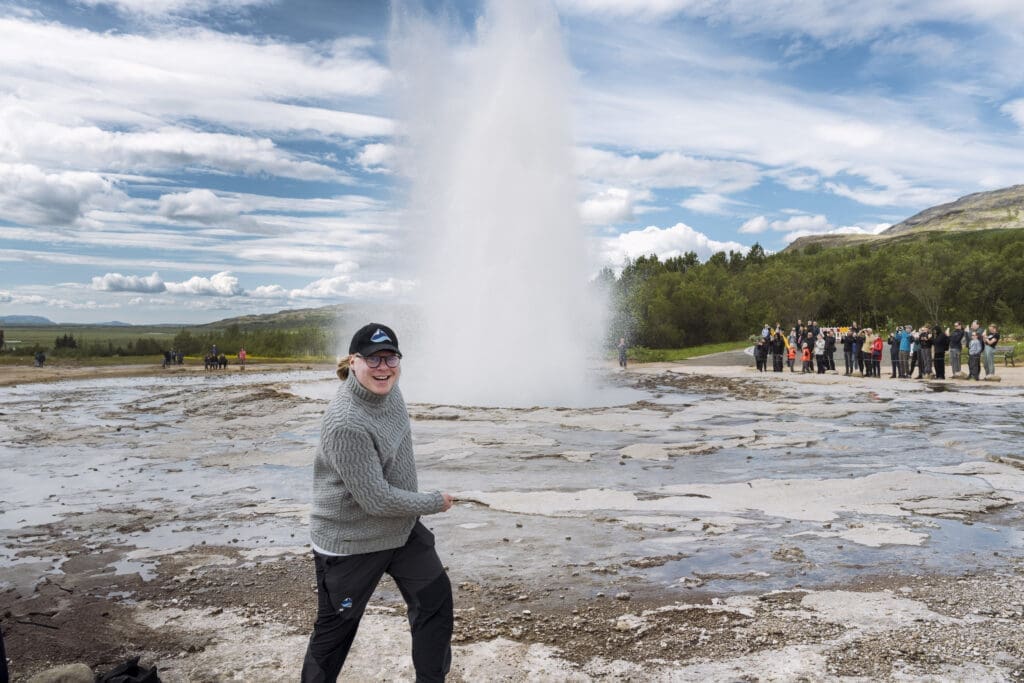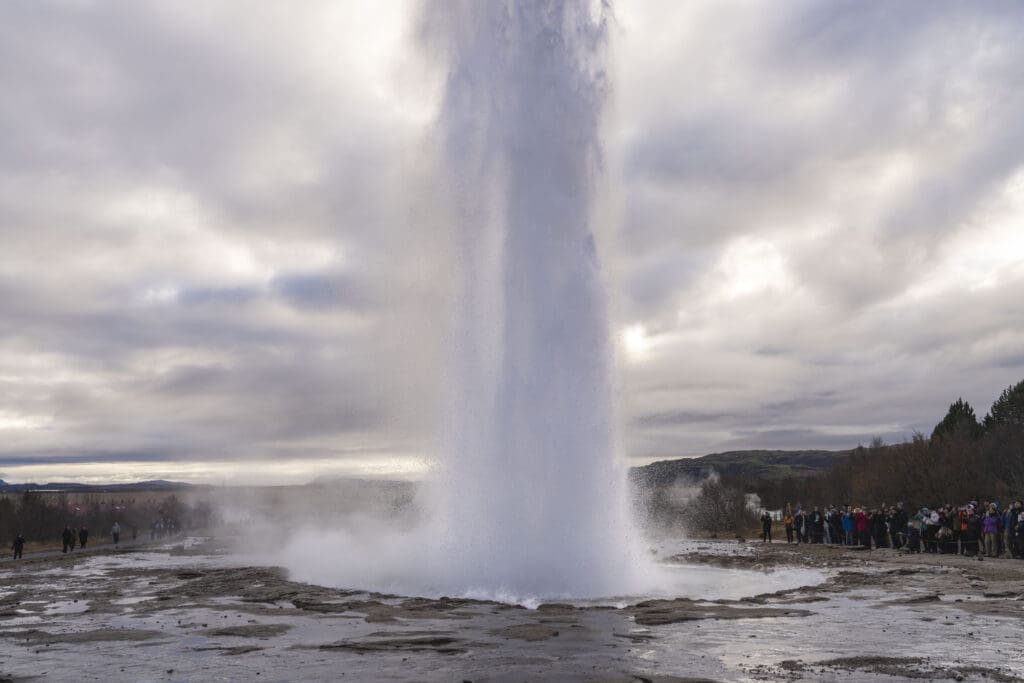 The famous Golden Circle tour takes visitors to some of Iceland’s most famous and exciting sites. The first stop is at the Thingvellir National Park 40 min east of the city. Þingvellir is one of Iceland’s most historic sites as it was here that Iceland’s first parliament was founded in the year 930 AD. From Þingvellir we head along gravel tracks toward the world-renowned geothermal area around the Geysir hot spring where you can witness gurgling bubbling water burst 25 meters high. This is the one spouting hot spring that all such phenomena on Earth are named after. From there we continue on to Gullfoss, “the Golden waterfall”, with practically no limit to how close you can stand next to it. Gullfoss is a great sight with water rushing down three steps of lava layers exhibiting breathtaking power and grandeur.