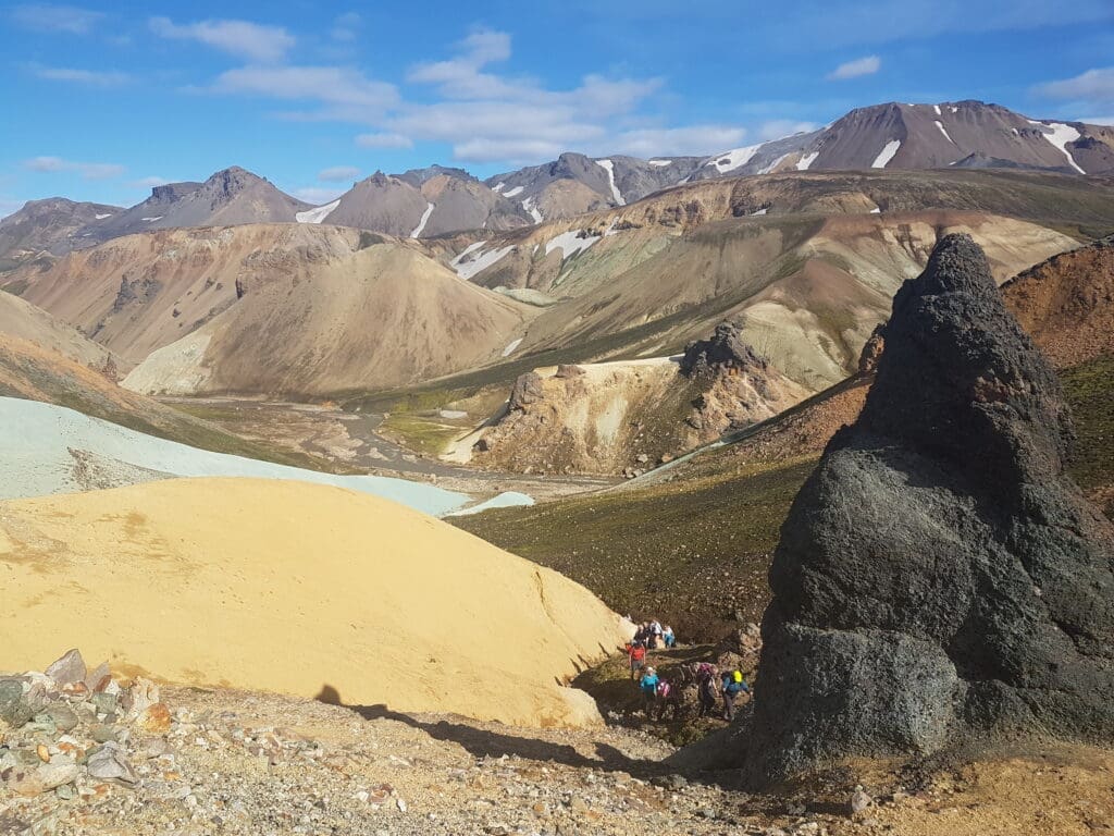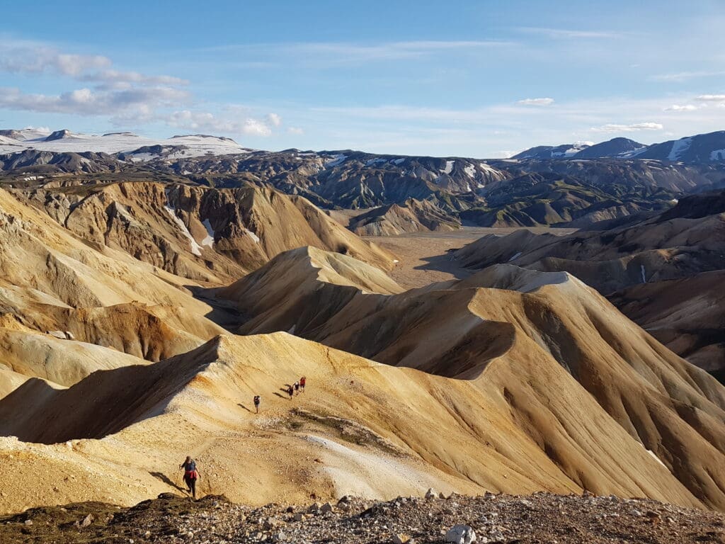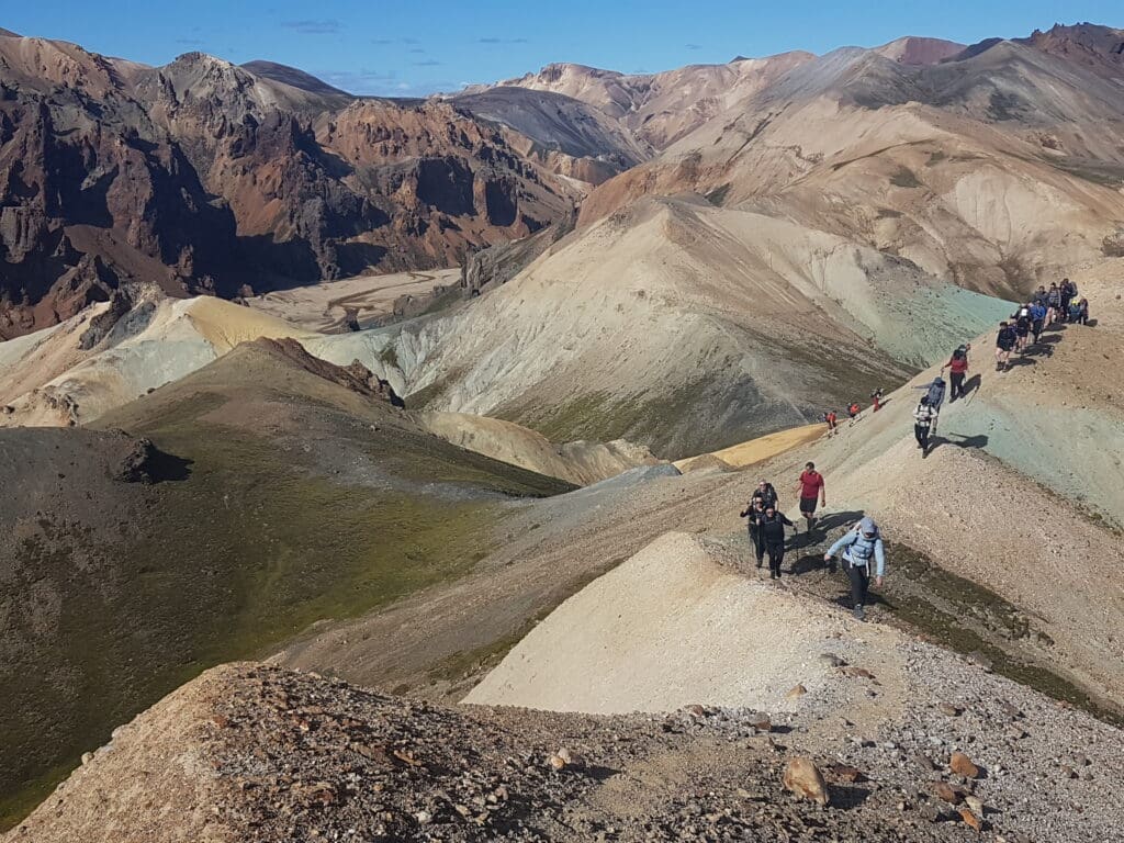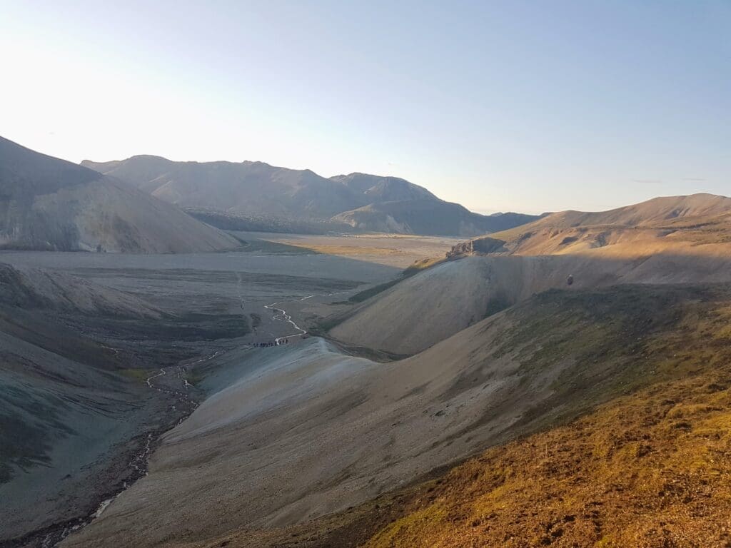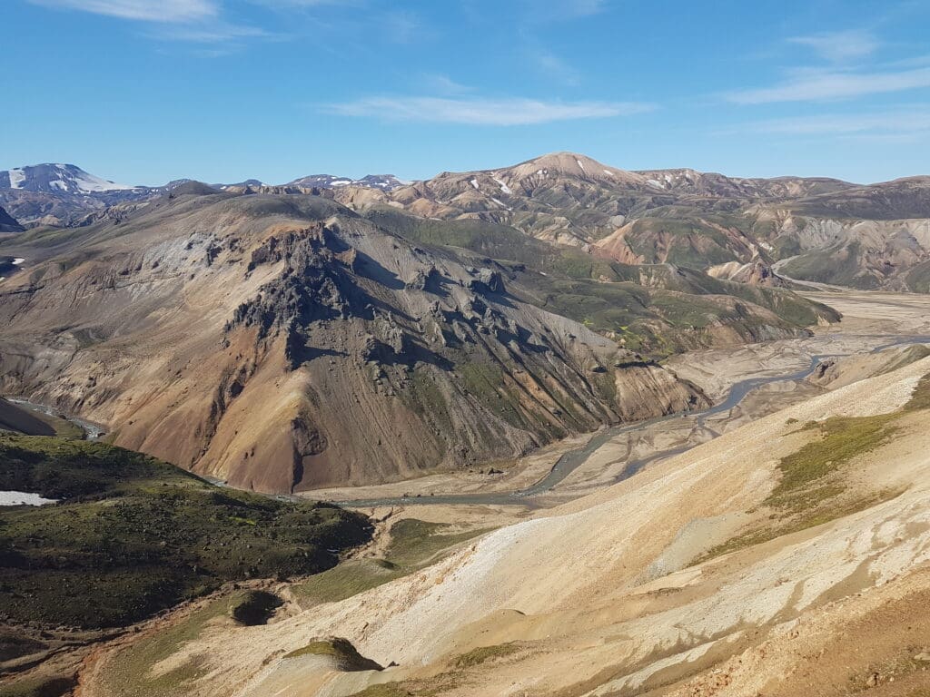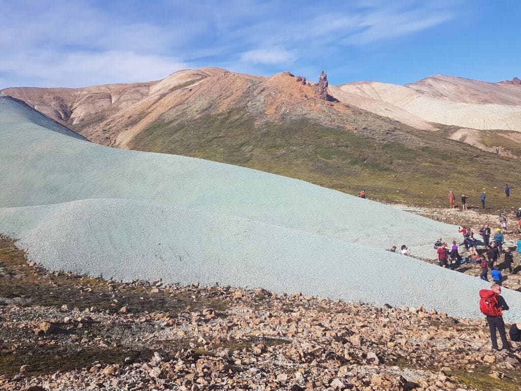 Grænihryggur or “Green Ridge” in English is exactly what it claims to be. A ridge of the most incredible green colour that seems almost too unnatural to be found in the middle of the highlands. But this is Iceland, so expect the unexpected. One of the most colourful areas of the entire island are Landmannalaugar, known for their colourful rhyolite mountains, glaciers and magical green moss. This vast, colourful and untouched wilderness in the highlands is a popular area among hikers and recently, hikes to Green Ridge have become increasingly popular. This hike travels through this otherworldly landscape of ridges, canyons and glaciers, with Green Ridge as its ultimate destination. The hike itself is expected to take approx. 8 hours and includes some wading so pack appropriately (warm clothes, towel, plenty of food and a camera) and enjoy the scenery.