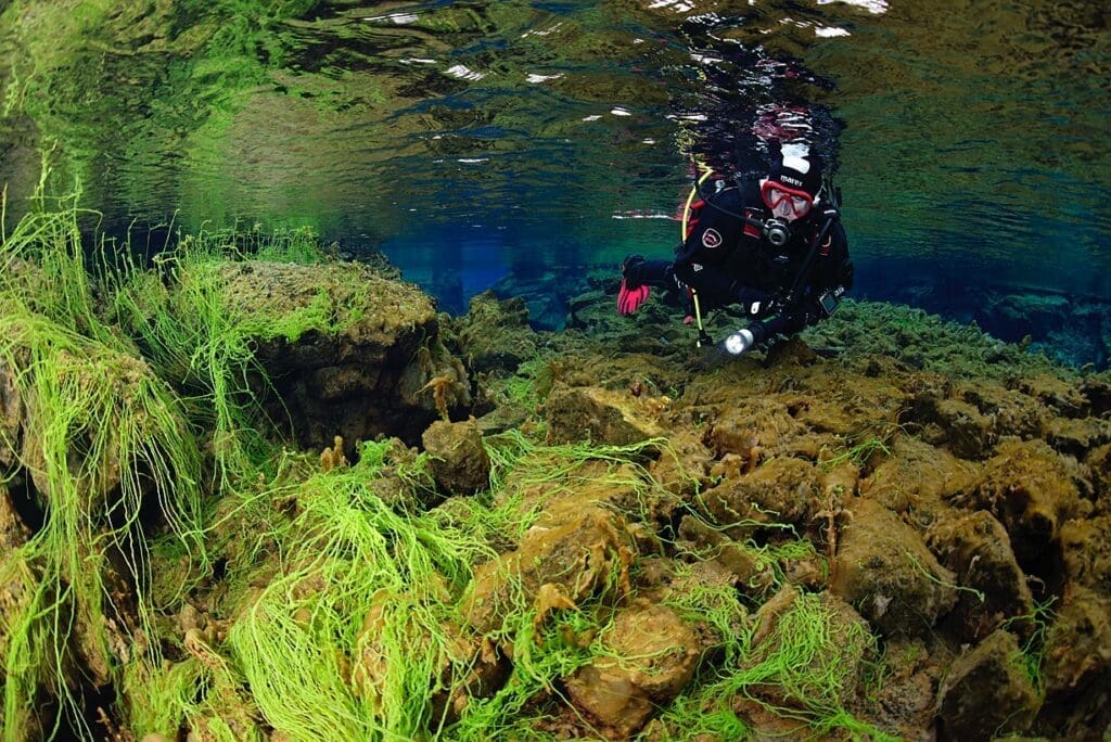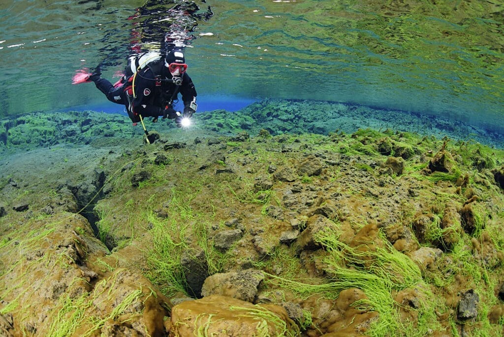 Your adventure begins with a scuba diving tour of Silfra. Silfra, the famous fissure between the Eurasian and North American tectonic plates, provides an underwater experience unlike anywhere else on earth.
