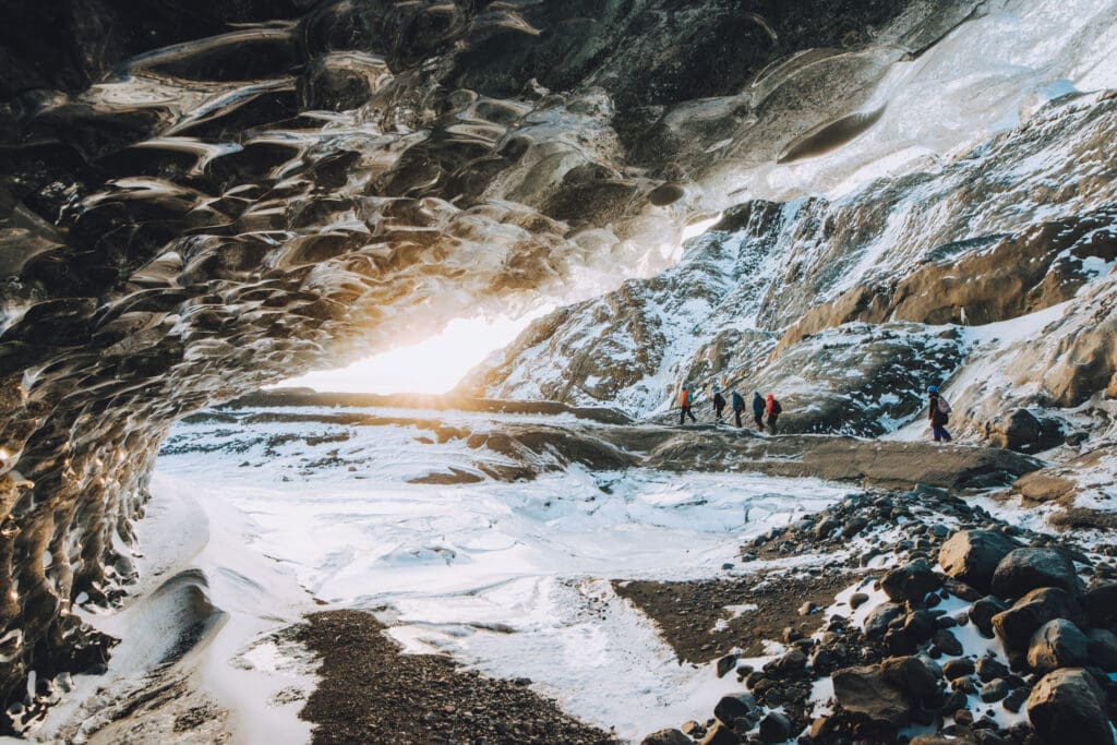 This ice cave tour is for those who want to get more out of their ice cave experience. On this tour, we visit less crowded ice cave and give you more time to see the amazing natural surroundings and the glacier itself. In some cases, we need to walk on the glacier to get to the ice cave. The tour can take 4 to 6 hours, depending on location and weather. We will prepare the backpack with all the equipment (we provide). Then we will drive on a super jeep as close to the glacier as we can, hike in the glacier area, sometimes we might need to walk on the glacier too, visit the ice cave and enjoy our time there. If you like photographing, we recommend this tour for you. All the ice caves are naturally made, so it is nature that decides how they are shaped and where they are located. Safety is our priority, so we will always choose the best Ice cave for every trip. The drive and the walk to the ice cave can, therefore, be different between days. If nature decides we are not able to go to the ice cave, we have other extraordinary alternatives for you.