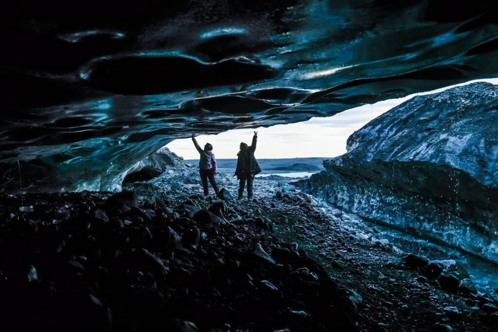 Entering the ice cave will be an unreal and otherworldly experience for most people. Your eyes will slowly adjust to the crystal blue walls of the cave and showcase its hidden beauty. If you are lucky and it’s a clear day, you may also see the sun rising with its first light hitting the walls of the cave, a truly magical experience.