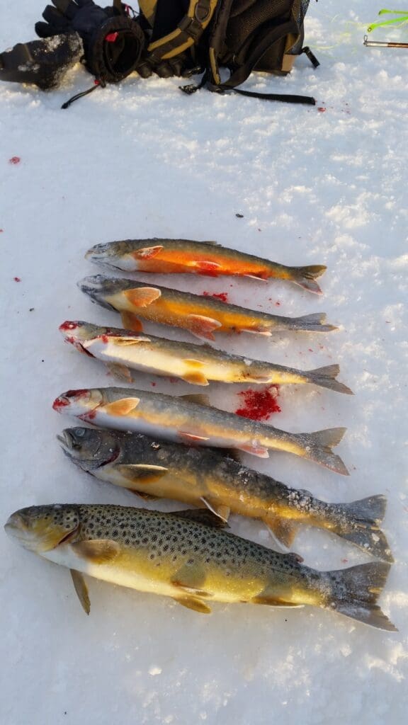 The lakes hold small arctic char and big brown trout and the odds are in your favor since it is not unusual to catch up to 15-20 char a day with the occasional huge brown trout.
