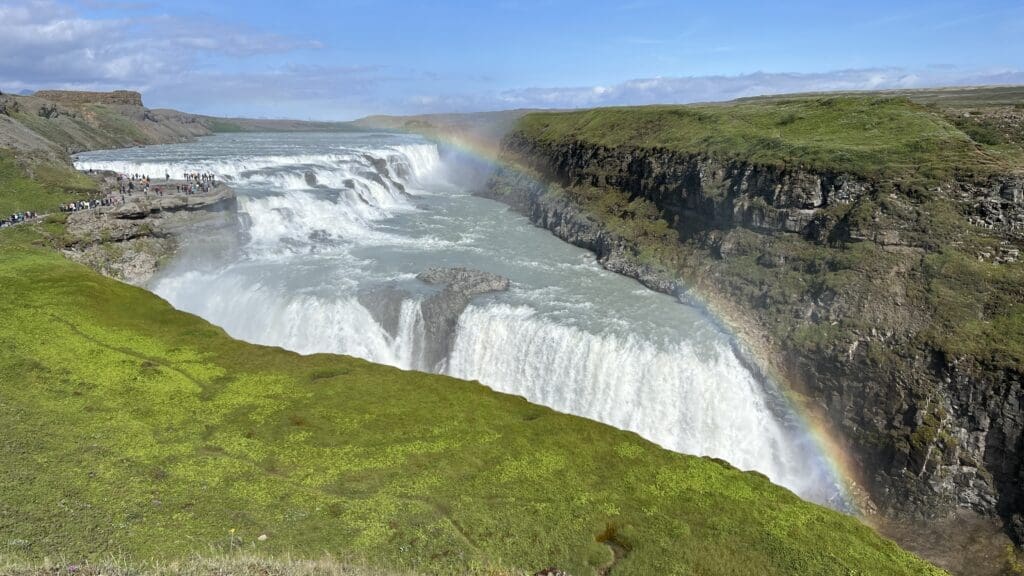 Gullfoss: one of Iceland’s most beautiful waterfalls. As the water plunges into a deep canyon, it creates a dazzling display of mist and spray that is truly awe-inspiring.