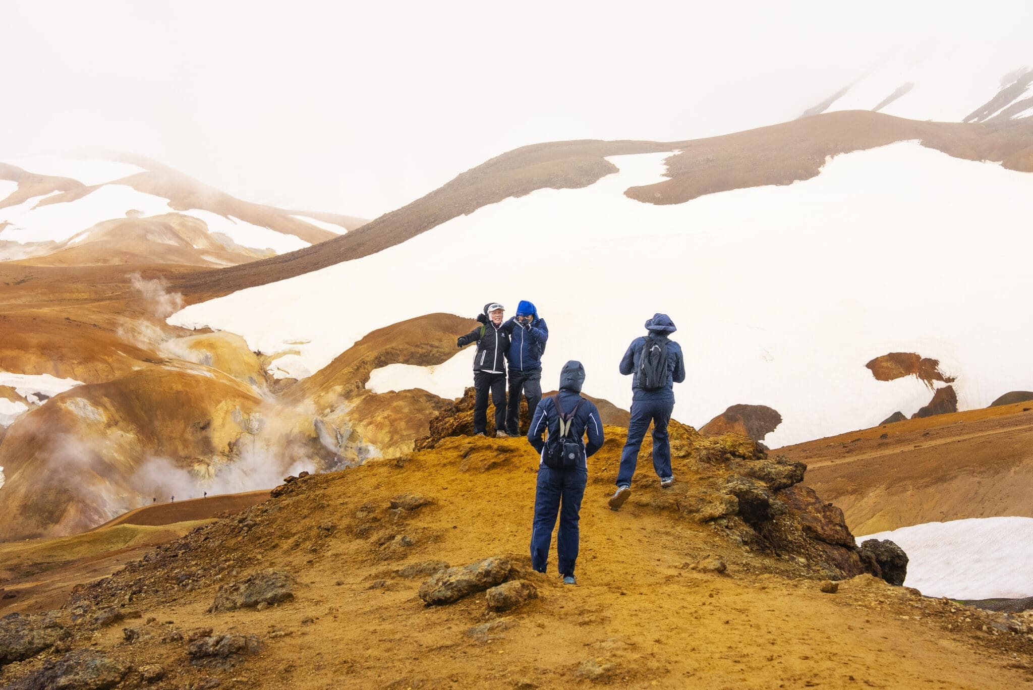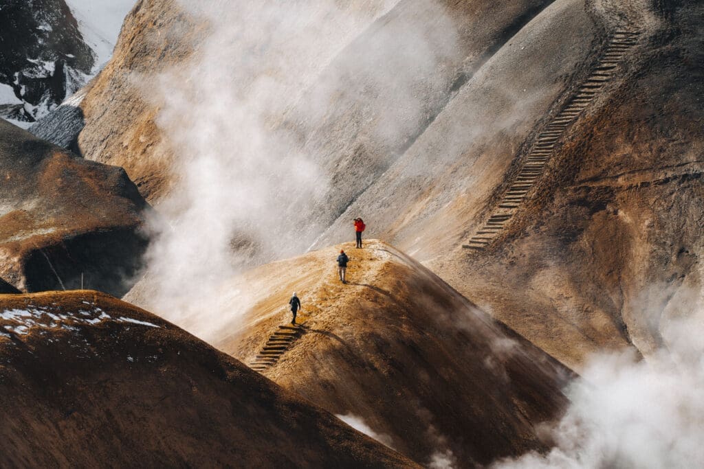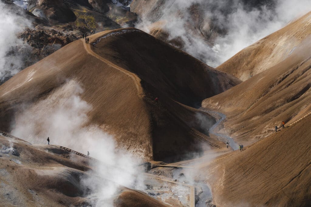 The site is surrounded by the rhyolite mountains of the Kerlingarfjoll range, making for some spectacular and colorful surroundings and excellent hiking opportunities. Some of these natural hot springs are so powerful that they should only be admired from a safe distance.