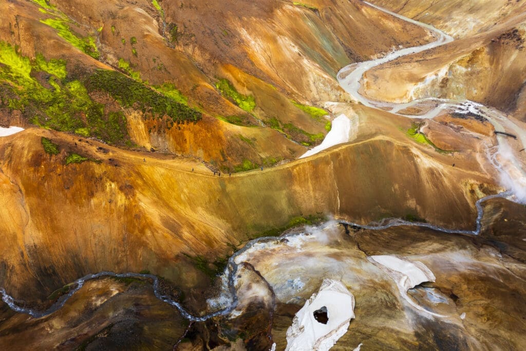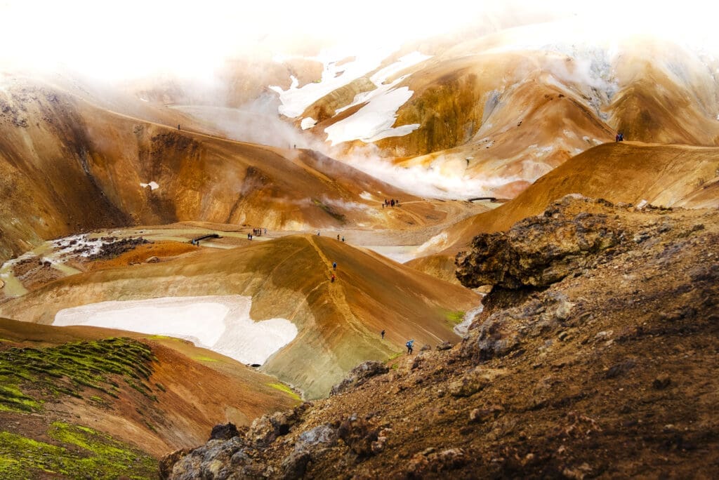 The jewel in the crown of Kerlingarfjöll is the Hveradalir valley, a truly iconic and beautiful landscape waiting to be explored. Hveradalir, meaning ‘the Valley of the Hot Springs,’ reflects its name by being one of the largest geothermal valleys in the country.