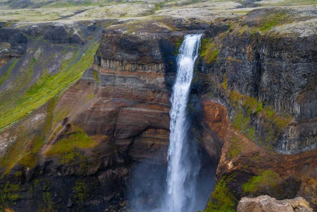 We make a stop at these waterfalls both of which drop over 100 meters to the canyon below. Háifoss is the larger both in height and volume and is in fact Iceland´s 4th highest falls. Granni, literally meaning neighbor cascades over a few levels before reaching the bottom.