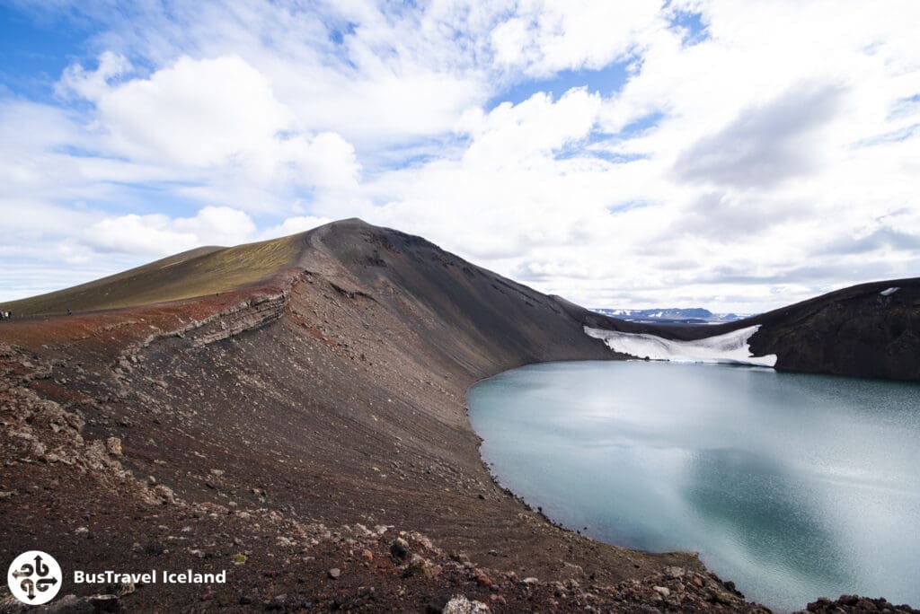 This crater lake is an underappreciated gem. Naturally places that are easy to reach attract more eyes and hype but Iceland is dotted with many hidden gems like this crater. Though less famous than the similar Kerið, Hnausapollur is well worth a visit. This crater was formed during the massive simultaneous eruption of Barðabunga and Torfajökull volcanoes, over 1200 years ago.