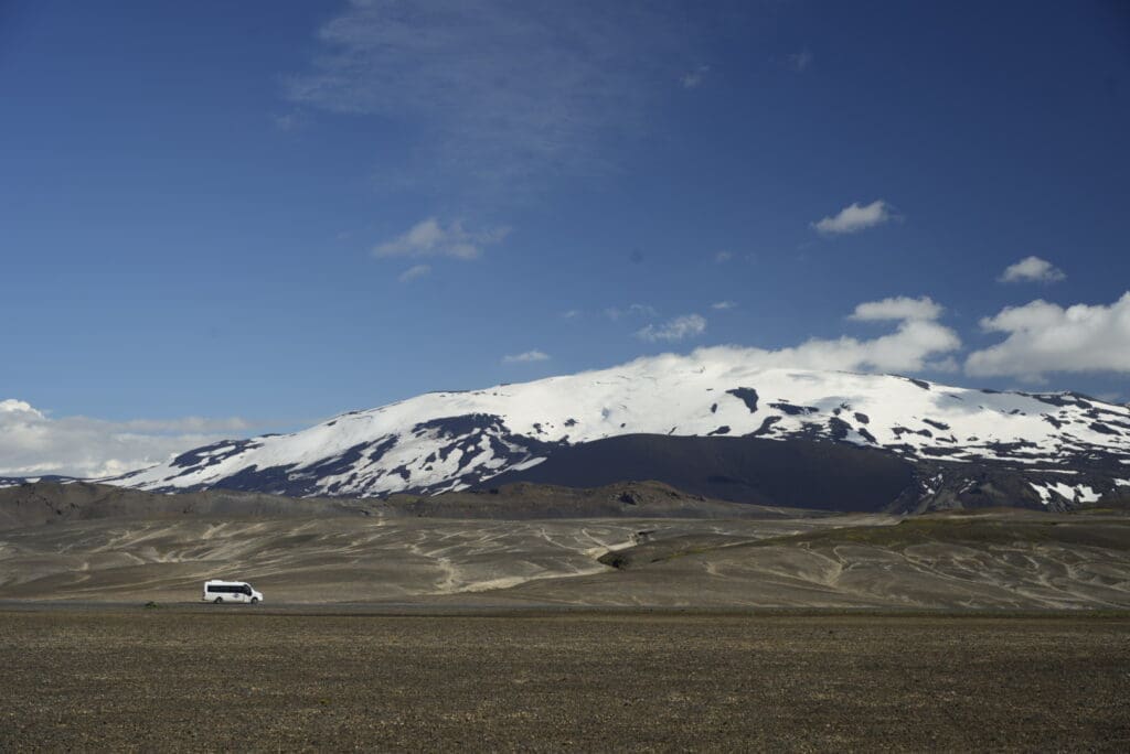 The way back takes us in sections through a pumice desert below the notorious Hekla volcano.