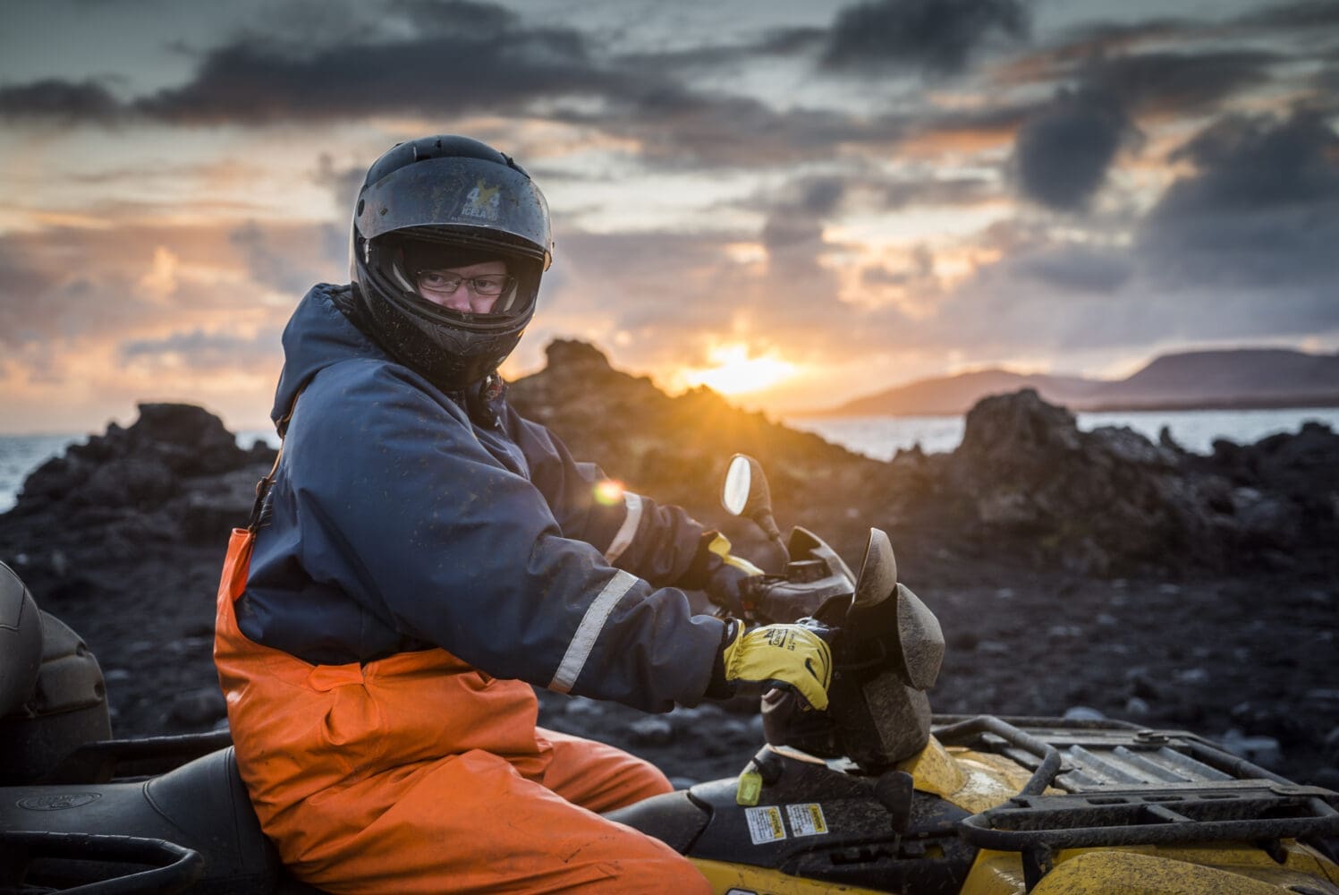 Rid your ATV or Buggy past the newest lava fields created by recent eruptions as we make our way up to a scenic observation point overlooking the fresh lava. From here you will witness an incredible view – beautiful lava fields and the endless light of the midnight sun stretching across the horizon.