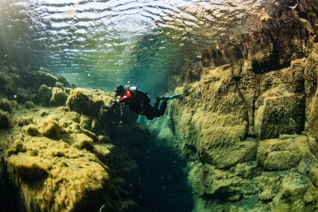 The water in Bjarnagjá is mostly fresh groundwater but it is influenced by the salinity of the sea as the rift is only few hundred meters from the coast. For those who have the appropriate level of training and diving experience this site offers dives in an overhead environment.