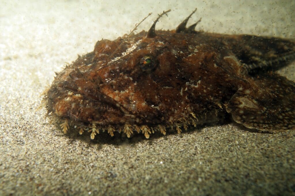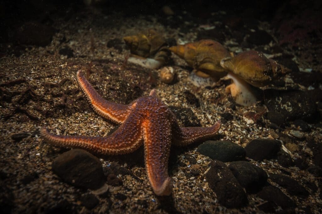 You will most likely notice pairs of eyes sticking out of the sandy patches of the ocean floor where the flounders live. Soft orange coral also intermittently decorates the sandy ocean floor. In the area of the kelp forests, a wolf fish might pay you an unexpected visit or stick its head out of a pile of rocks, looking a bit like a prehistoric creature.