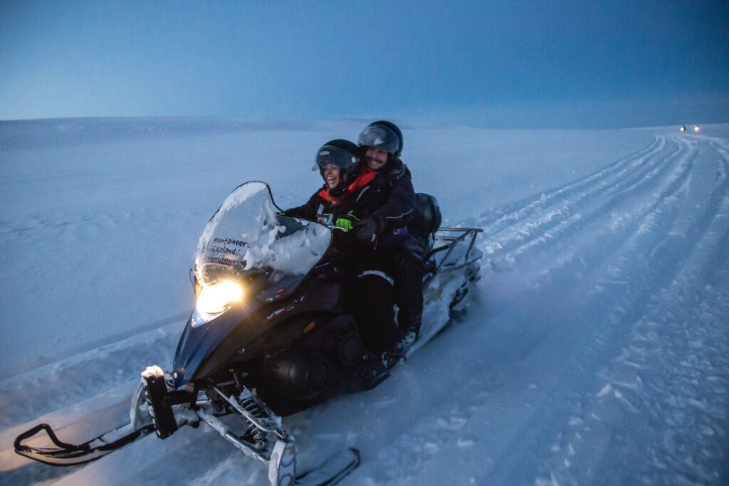 The Golden Circle tour allows visitors to get in touch with some of Iceland’s most famous and exciting natural phenomena. Our first stop is at Þingvellir National Park, which is one of Iceland's most significant historical sites. It's the home of Iceland’s first parliament which was founded in 930 AD. From Þingvellir we head along mountain tracks toward the world-renowned geothermal area around Geysir Hot Spring, the one spouting hot spring on Earth after which all other spouting hot springs are named. From there we continue on to Gullfoss (“the Golden waterfall”) where your proximity to its edge is so close you can feel the spray of the glacial water on your face. Next, we kick the action into higher gear to get even closer to Iceland’s nature and go for a one-hour snowmobile tour on Langjökull, Europe’s second-largest glacier.