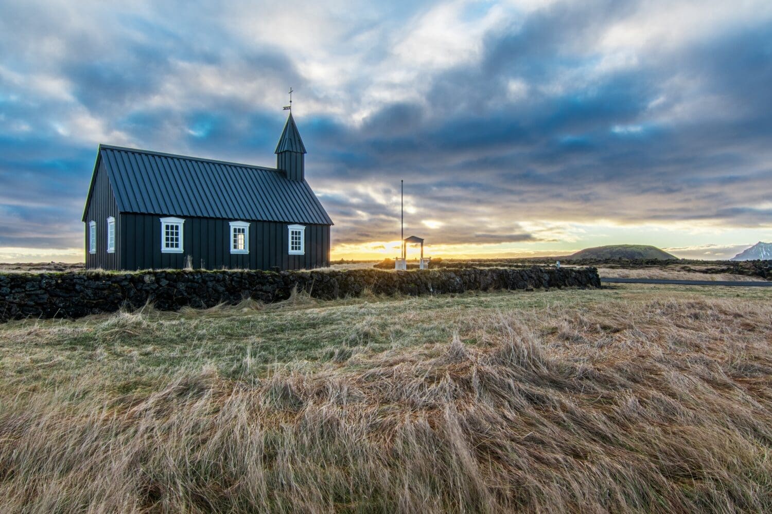 Búðir — home to the iconic black wooden church set against lava fields and the ocean. Simple yet striking, this landmark embodies the quiet beauty and rich history of the Snæfellsnes Peninsula.