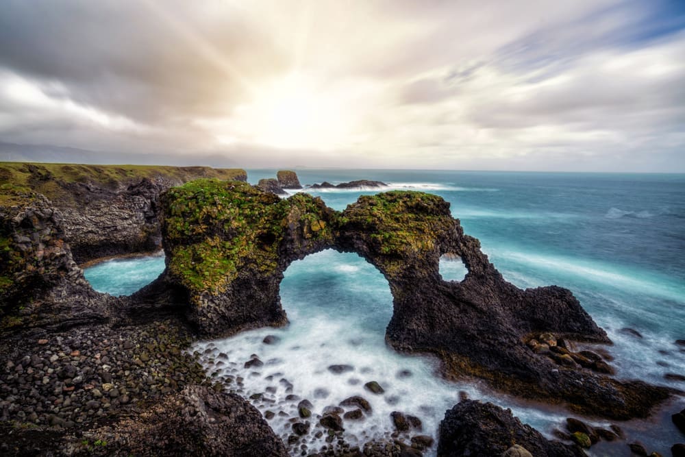 Arnarstapi — a charming fishing village with dramatic sea cliffs and natural stone arches. A coastal walk here offers sweeping views, seabird colonies, and a sense of Iceland’s rugged connection between land and sea.